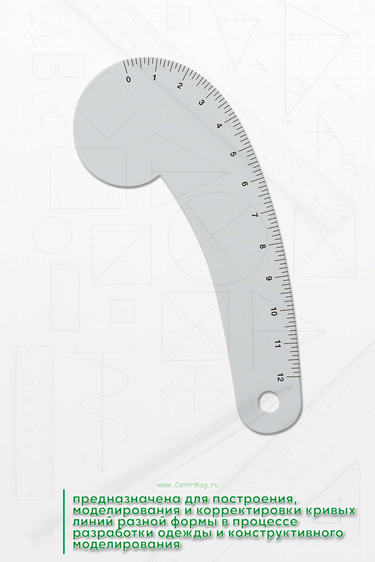 Линейка "Кривая разных форм" VFC12 предназначена для построения, моделирования и корректировки кривых линий разной формы в процессе разработки одежды и конструктивного моделирования.