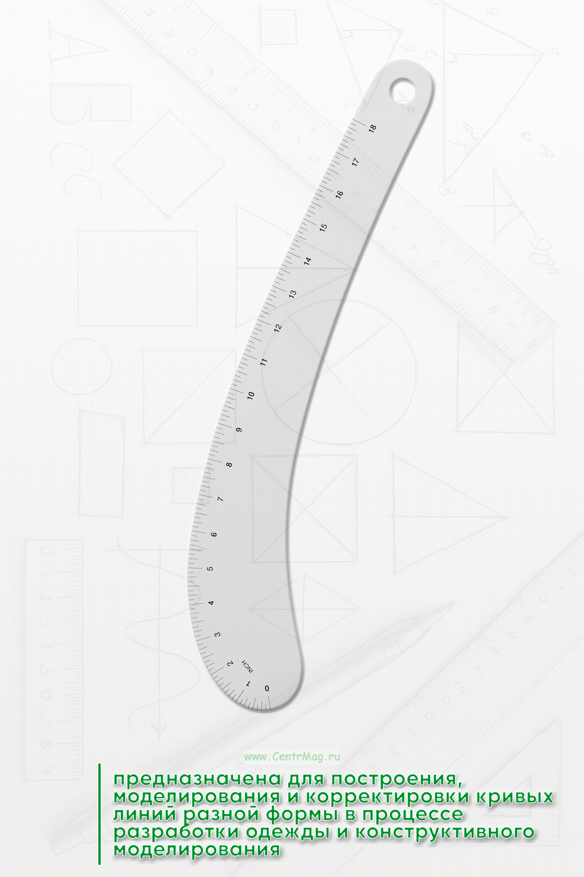 Линейка "Кривая разных форм" VFC18 предназначена для построения, моделирования и корректировки кривых линий разной формы в процессе разработки одежды и конструктивного моделирования.