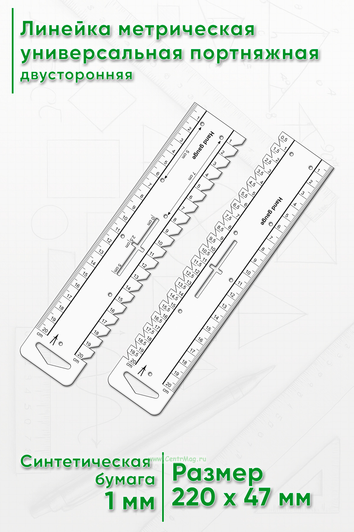 Линейка метрическая универсальная портняжная, двусторонняя