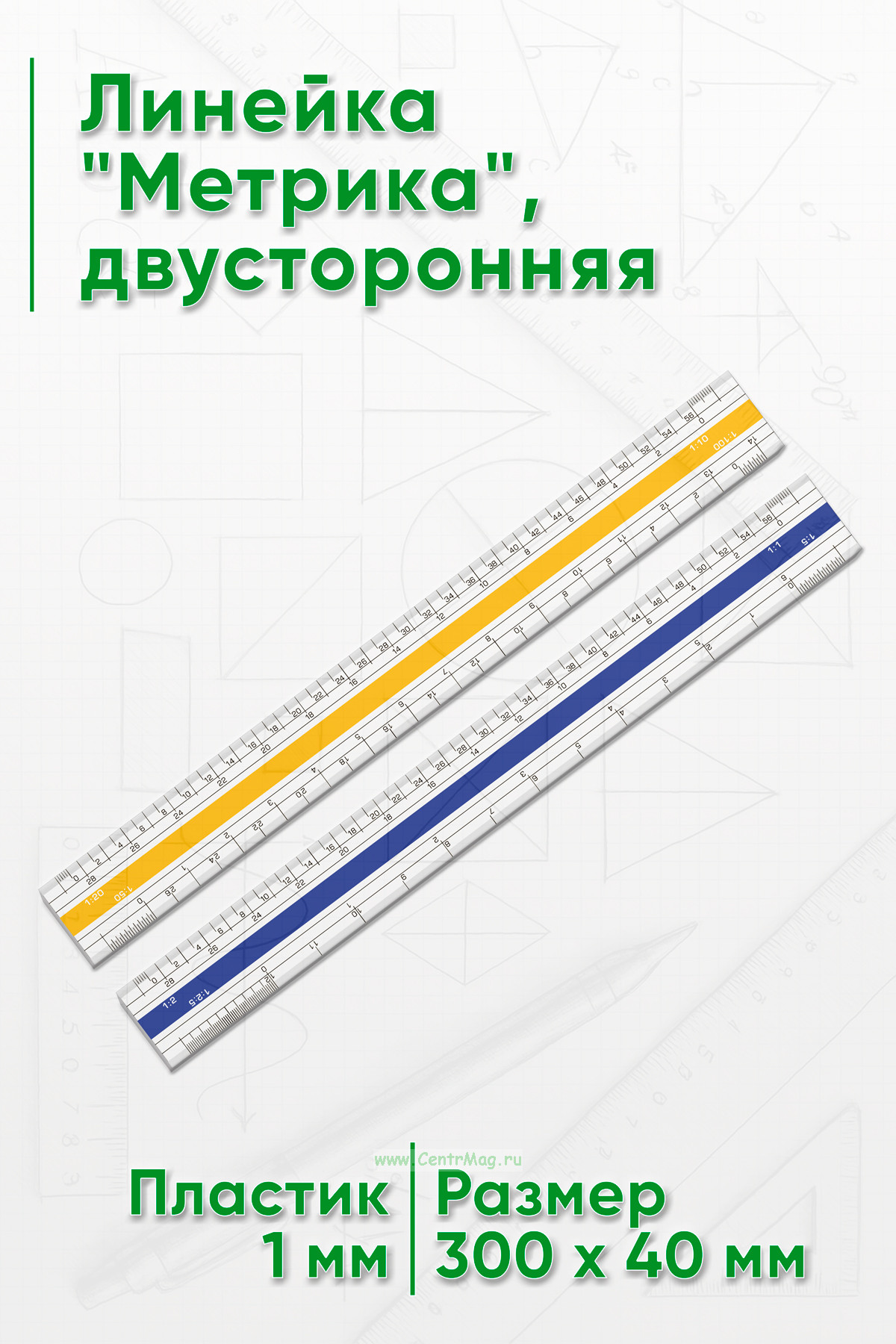 Линейка "Метрика" двусторонняя — это измерительный инструмент, предназначенный для выполнения различных измерений в метрической системе
