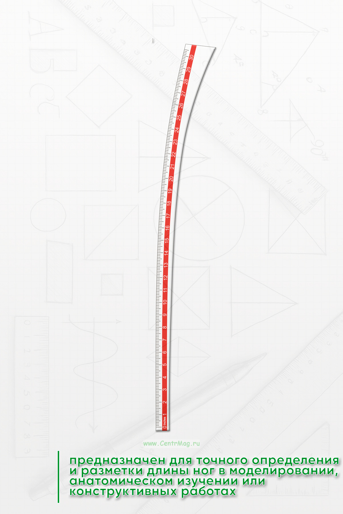 Линейка модельная "Длина ног" LC-30 — это специализированный измерительный инструмент, предназначенный для точного определения и разметки длины ног в моделировании, портновском деле, анатомическом изучении или конструктивных работах.