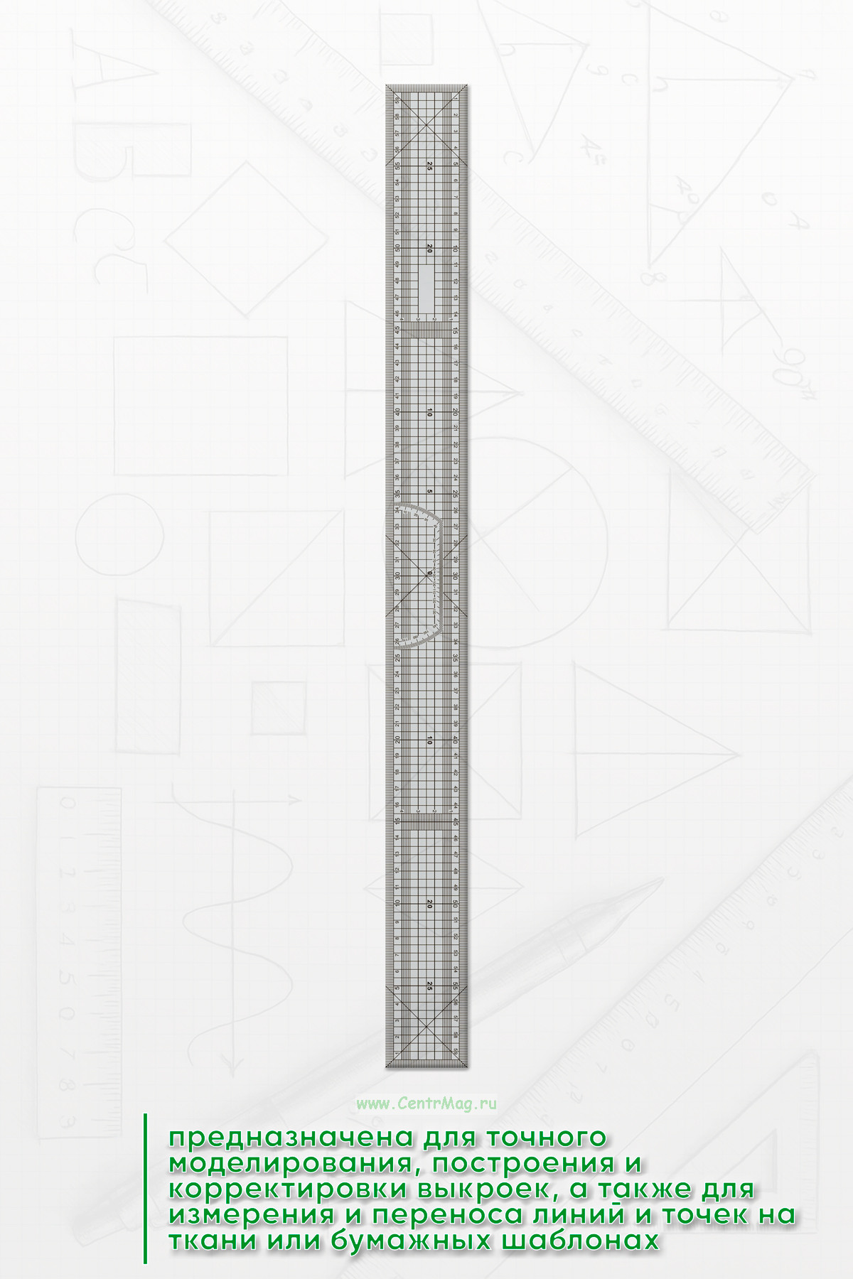 Линейка модельная с сеткой предназначена для точного моделирования, построения и корректировки выкроек, а также для измерения и переноса линий и точек на ткани или бумажных шаблонах.