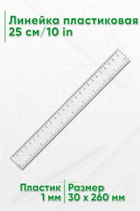 Линейка пластиковая 25 см/10 in