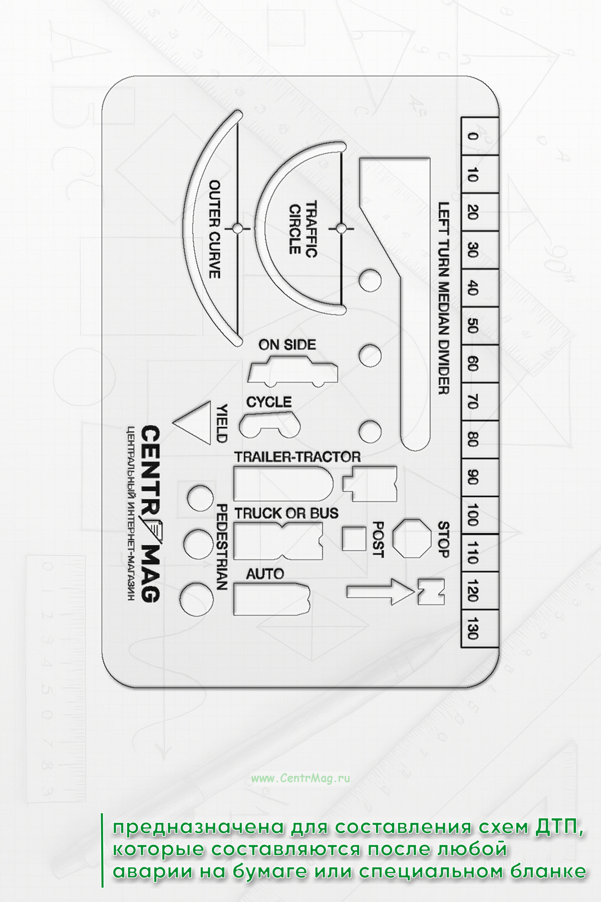 Линейка трафарет ДТП (англ)