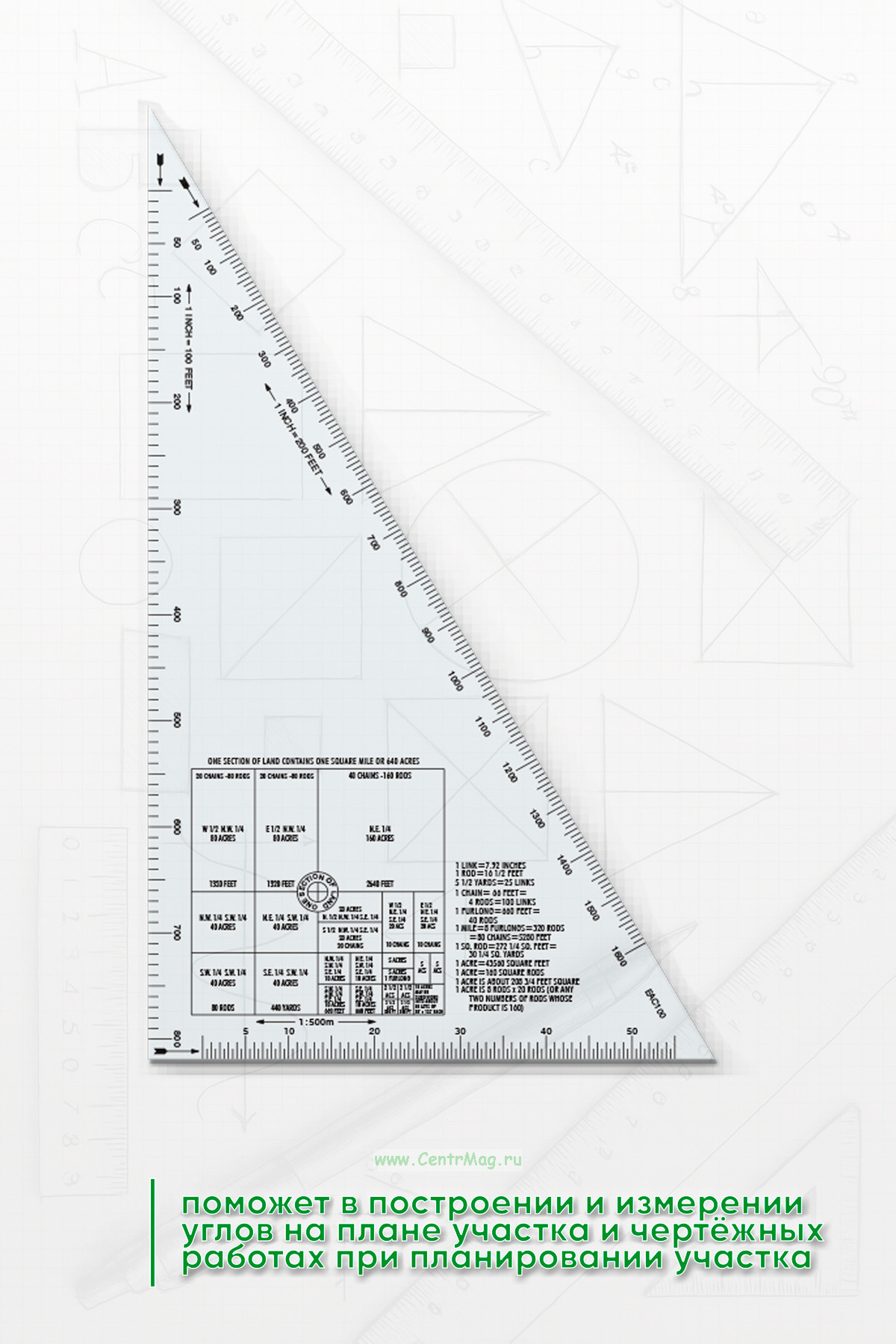 Поможет в построении и измерении углов на плане участка и чертёжных работах при планировании участка.