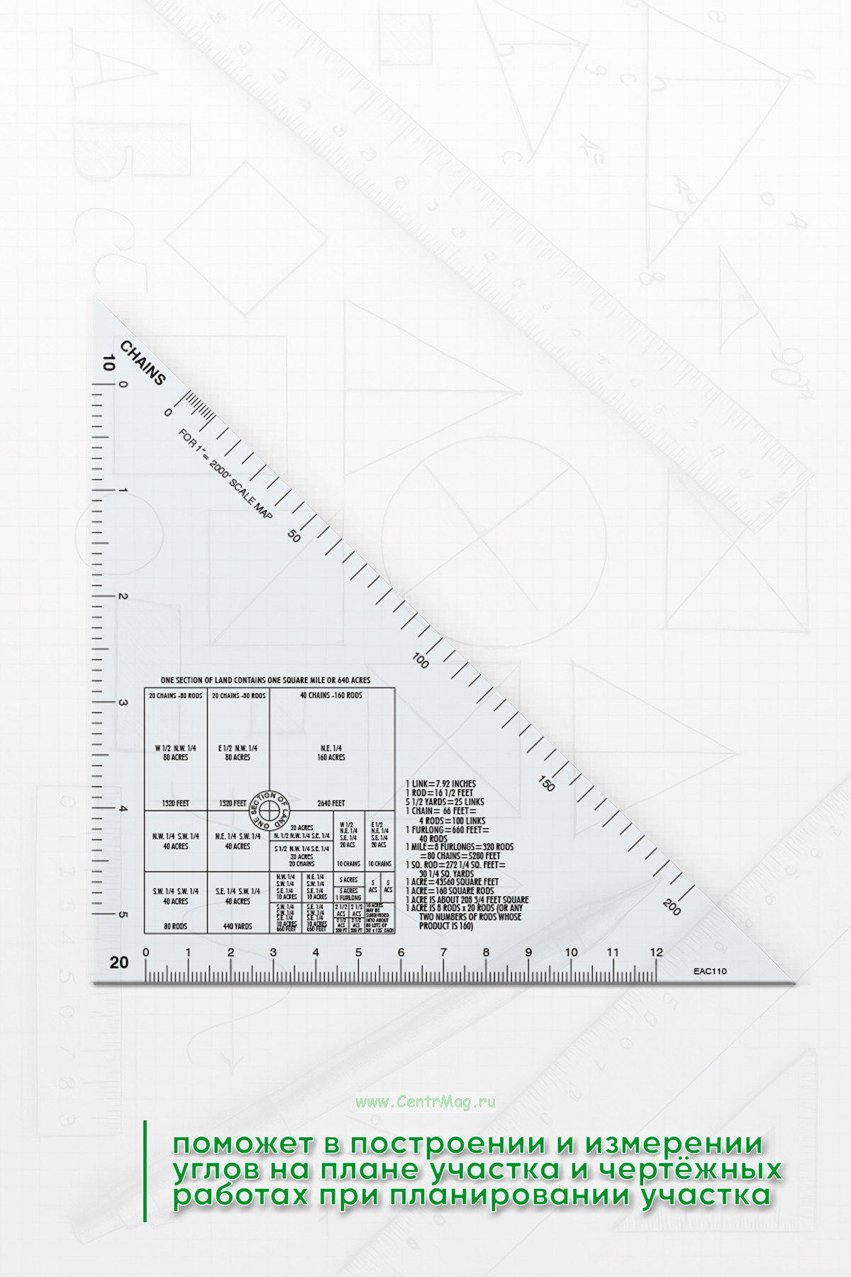 Поможет в построении и измерении углов на плане участка и чертёжных работах при планировании участка.