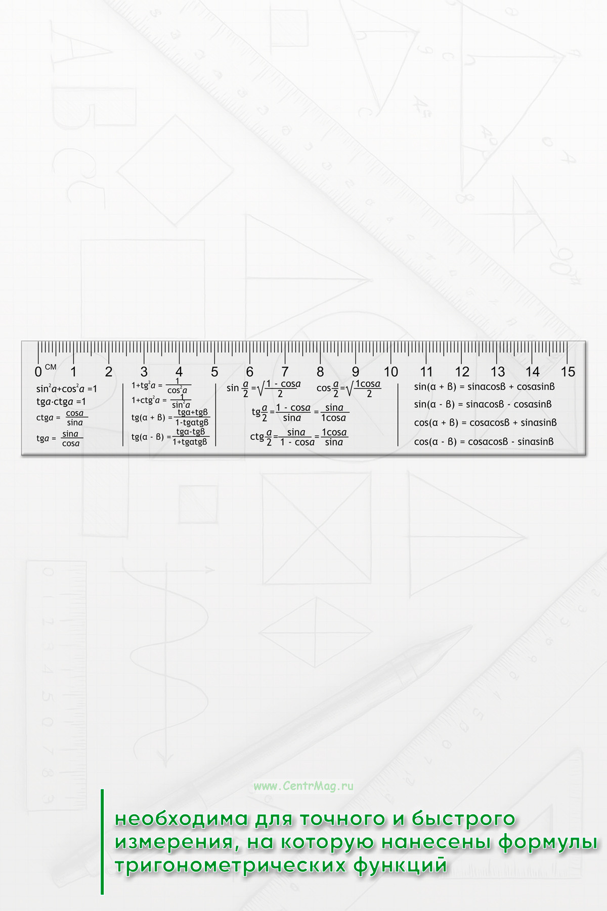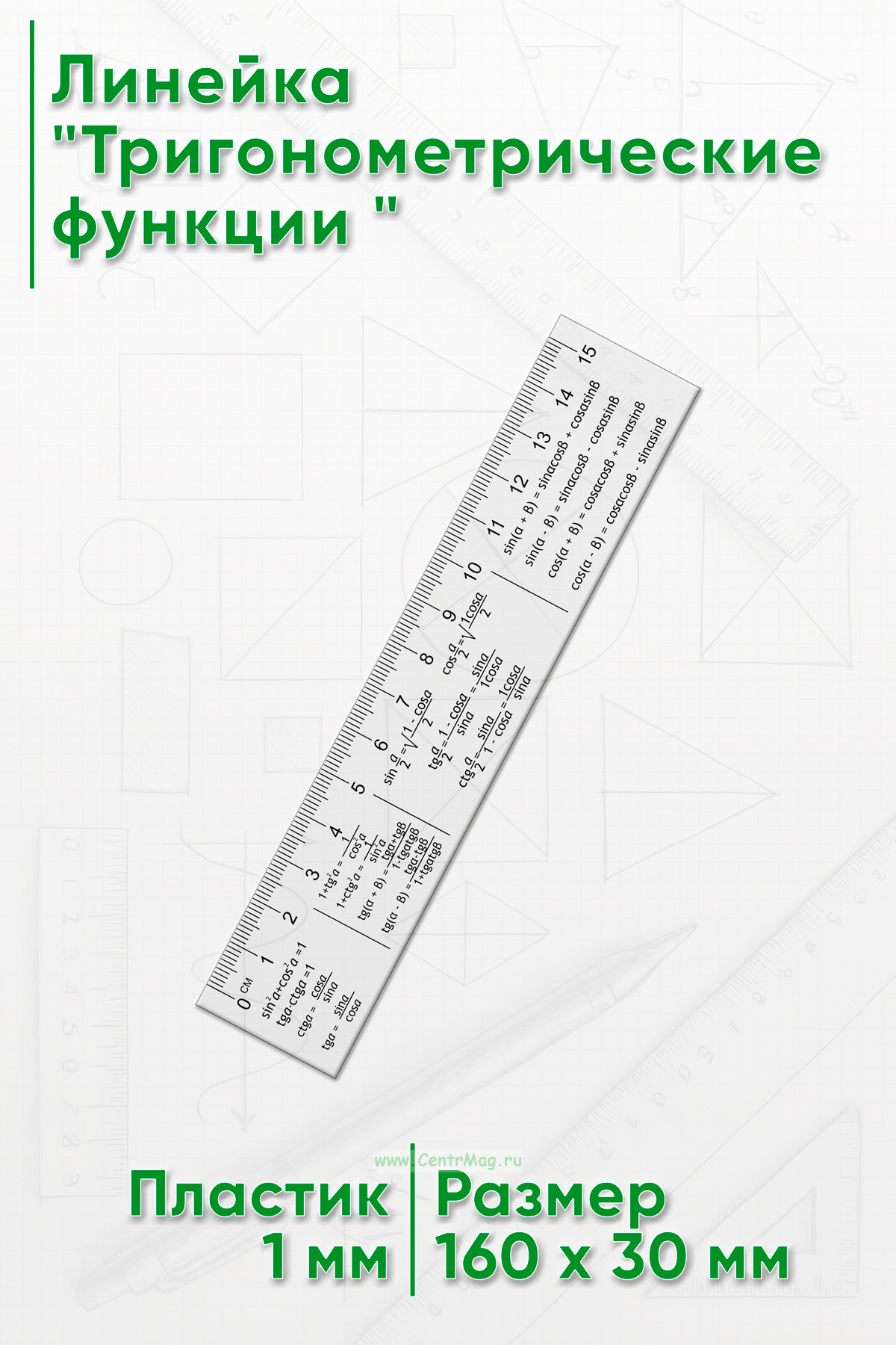 Линейка "Тригонометрические функции" необходима для точного и быстрого измерения, на которую нанесены формулы тригонометрических функций, помогая ученикам эффективно решать задачи и закреплять знания.