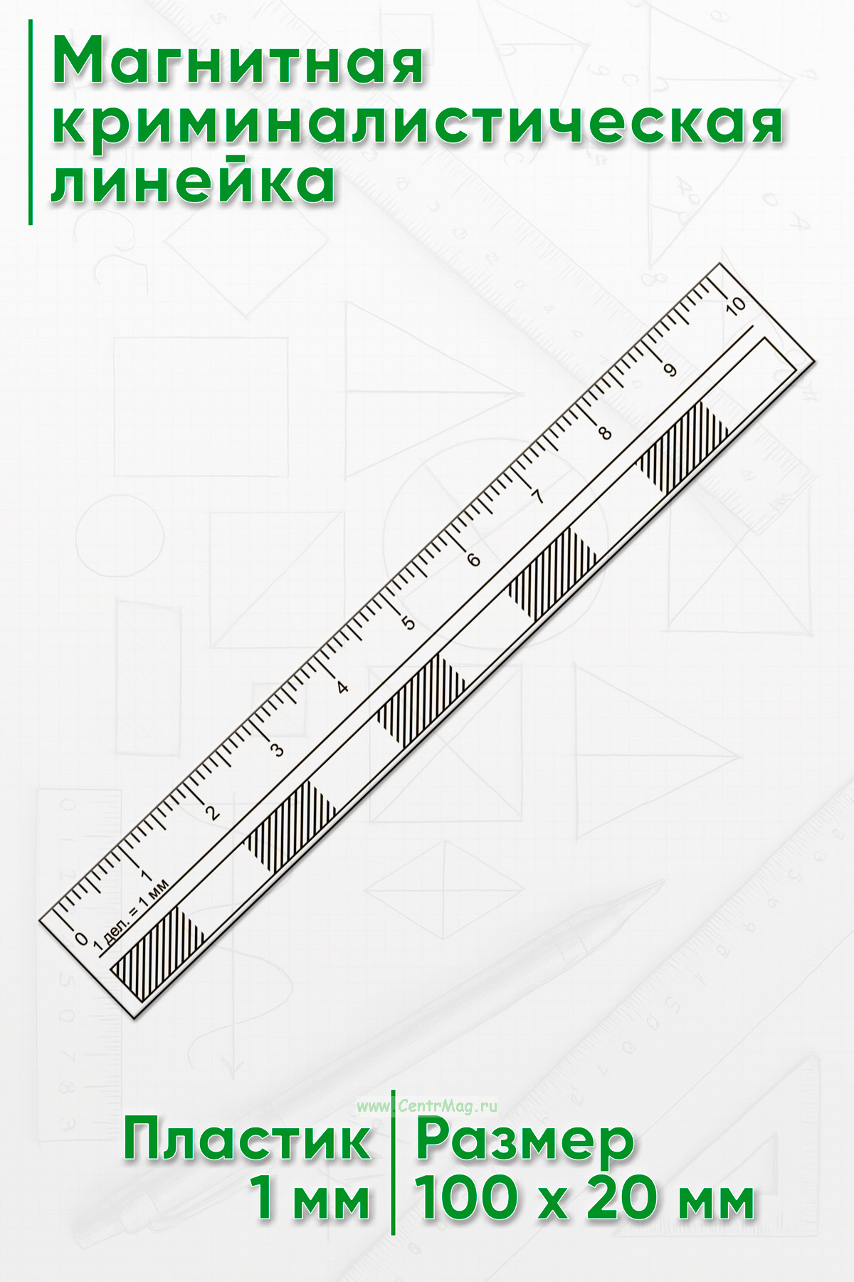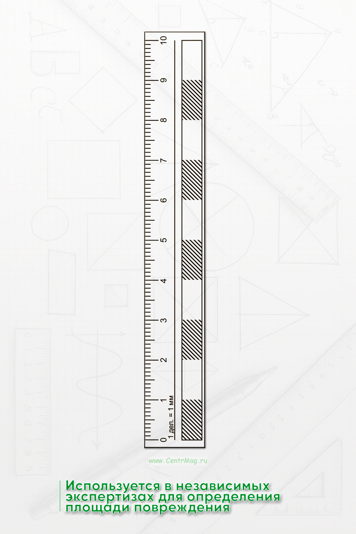 Линейка используется в независимых экспертизах для определения площади повреждения. Магнитные свойства позволяют ей удерживаться на металлических поверхностях в любом положении