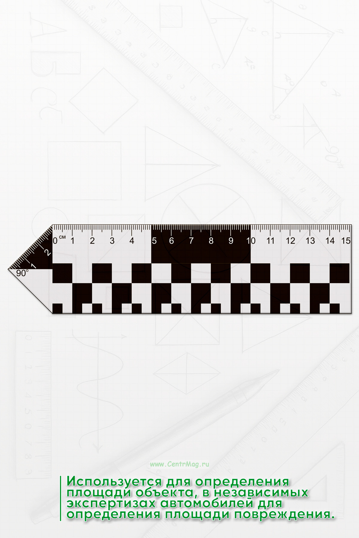 Линейка используется для определения площади объекта, в независимых экспертизах автомобилей для определения площади повреждения. Магнитные свойства позволяют ей удерживаться на металлических поверхностях в любом положении