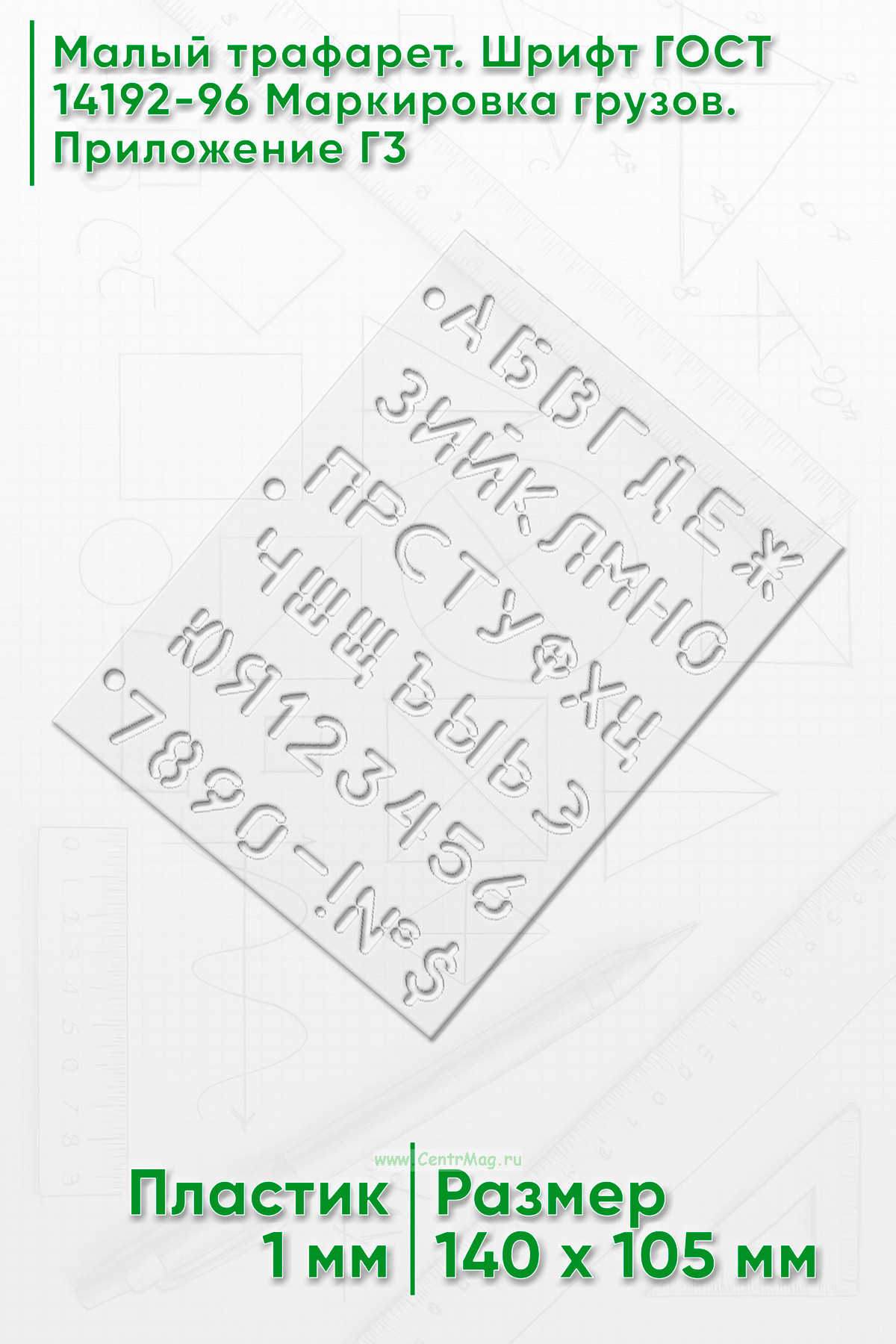 Малый трафарет. Шрифт ГОСТ 14192-96 Маркировка грузов. Приложение Г3 (рус. 140Х105 мм)