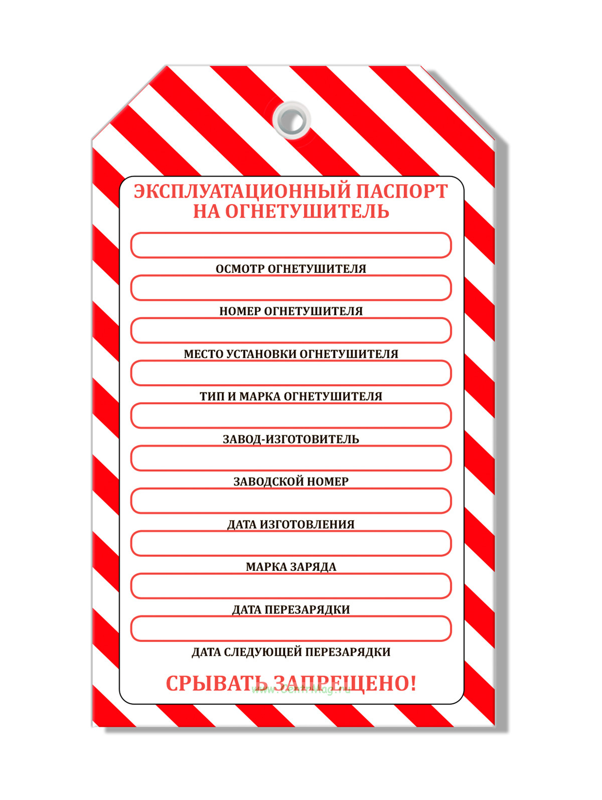 Маркировочная бирка "Эксплуатационный паспорт на огнетушитель" (пластик, толщина 0,7 мм), 12 шт (120 руб.)