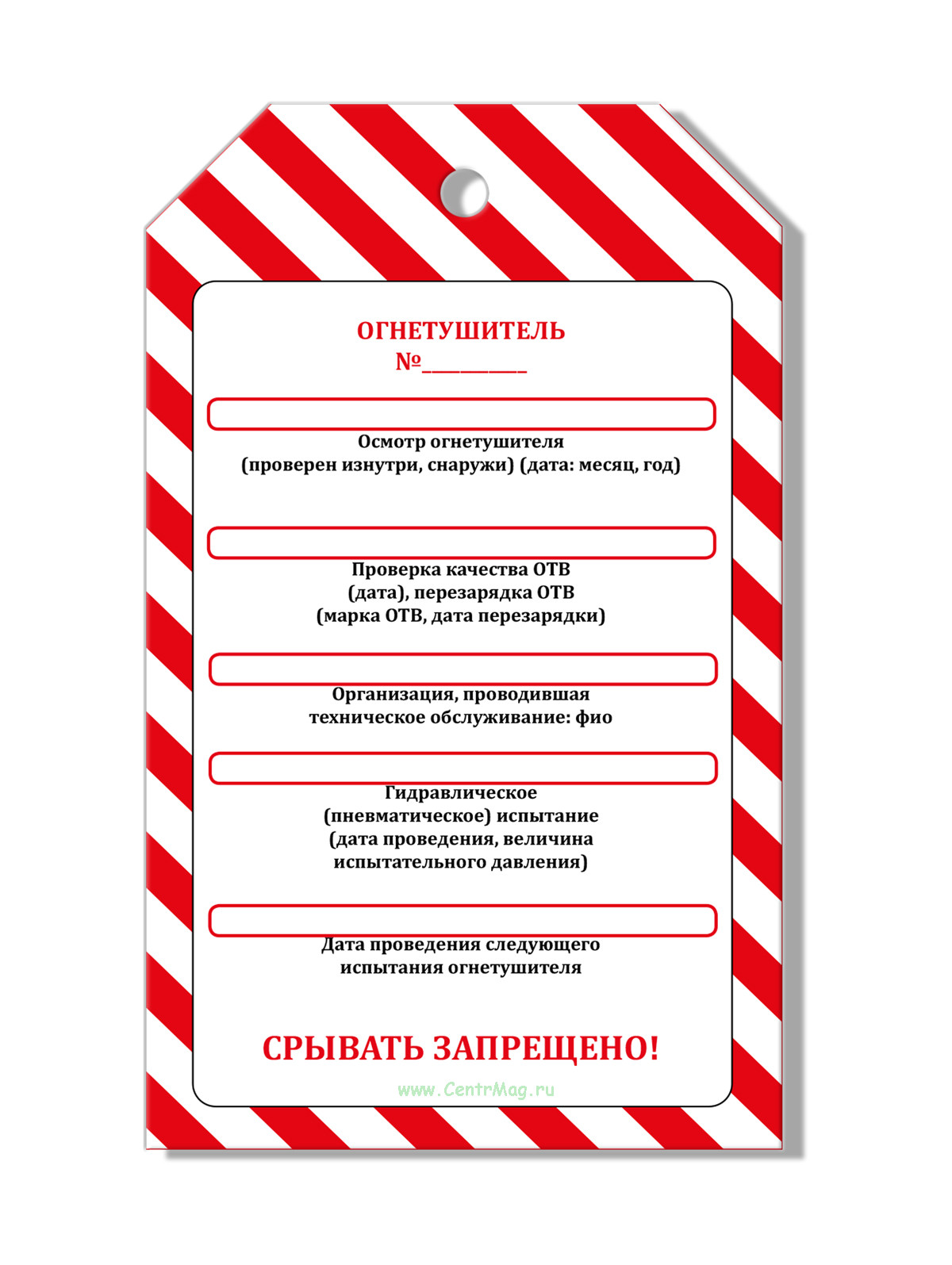 Маркировочная бирка на огнетушитель "Вид технического обслуживания" (картон), 12 шт (80 руб.)