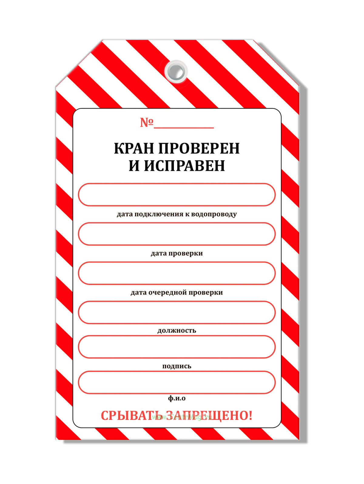 Маркировочная бирка на пожарный кран "Кран проверен и исправен" (пластик, толщина 0,7 мм), 12 шт (120 руб.)