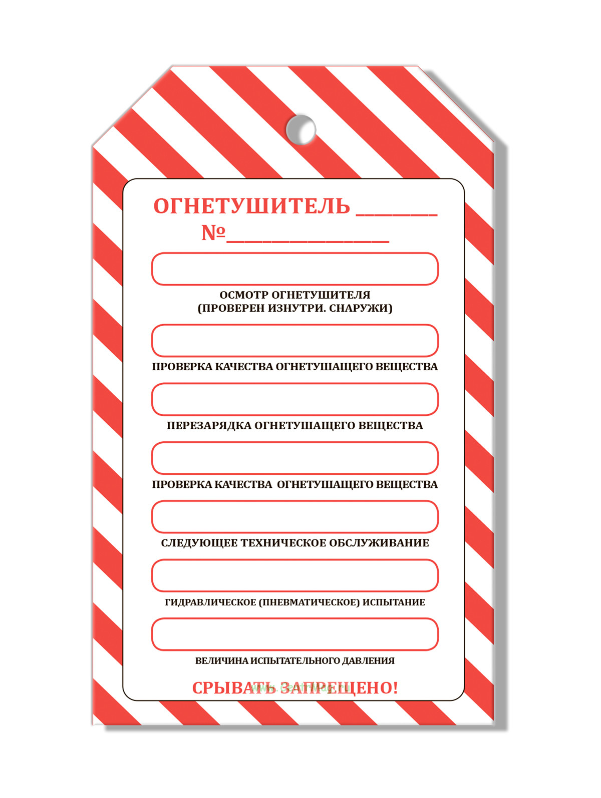 Маркировочная бирка "Вид технического обслуживания огнетушителя" (картон), 12 шт (80 руб.)
