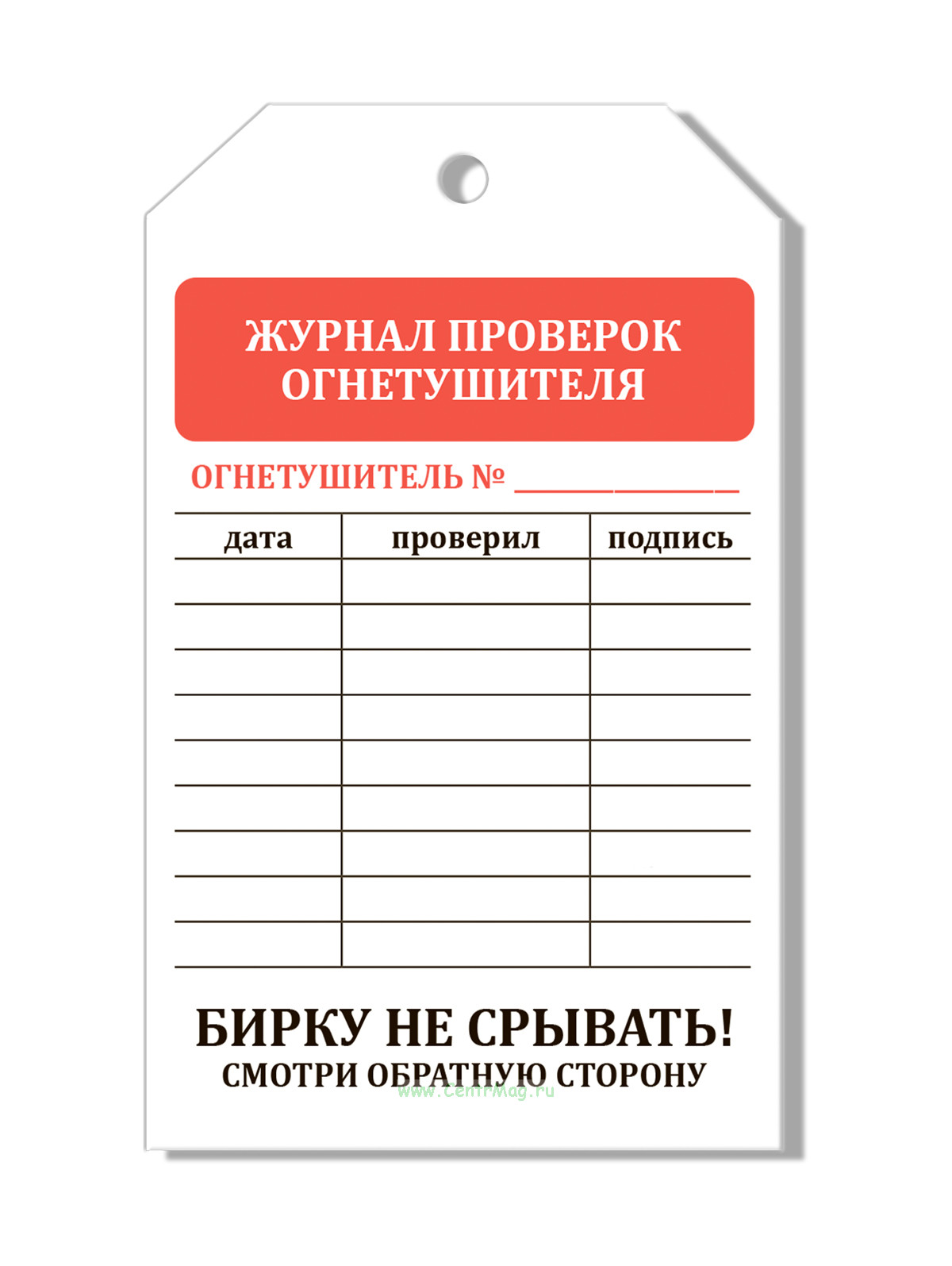 Маркировочная бирка "Журнал проверок огнетушителя"/"Использование огнетушителя" (картон с люверсом), двусторонняя, 12 шт (120 руб.)