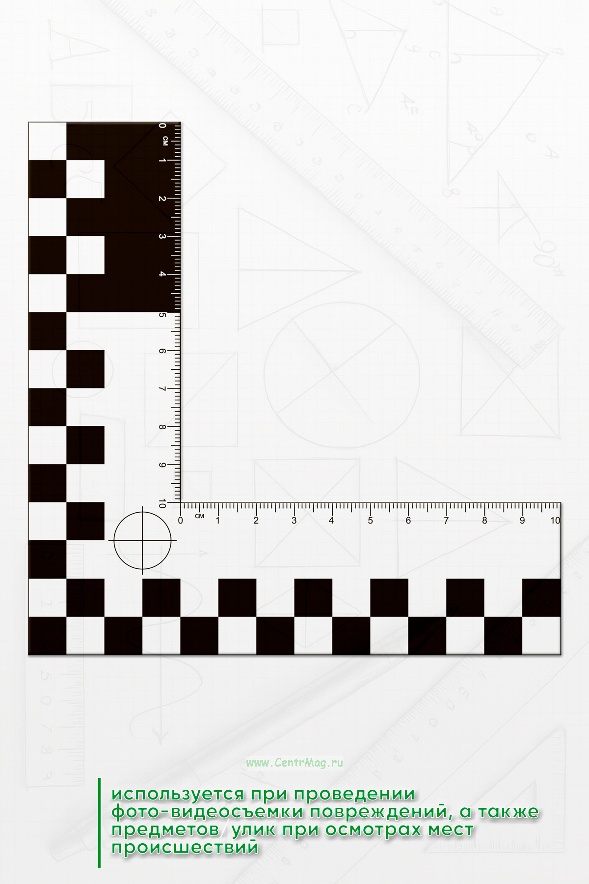 Линейка угловая используется при проведении фото-видеосъемки следов обуви, а также других предметов и улик при осмотрах мест происшествий.