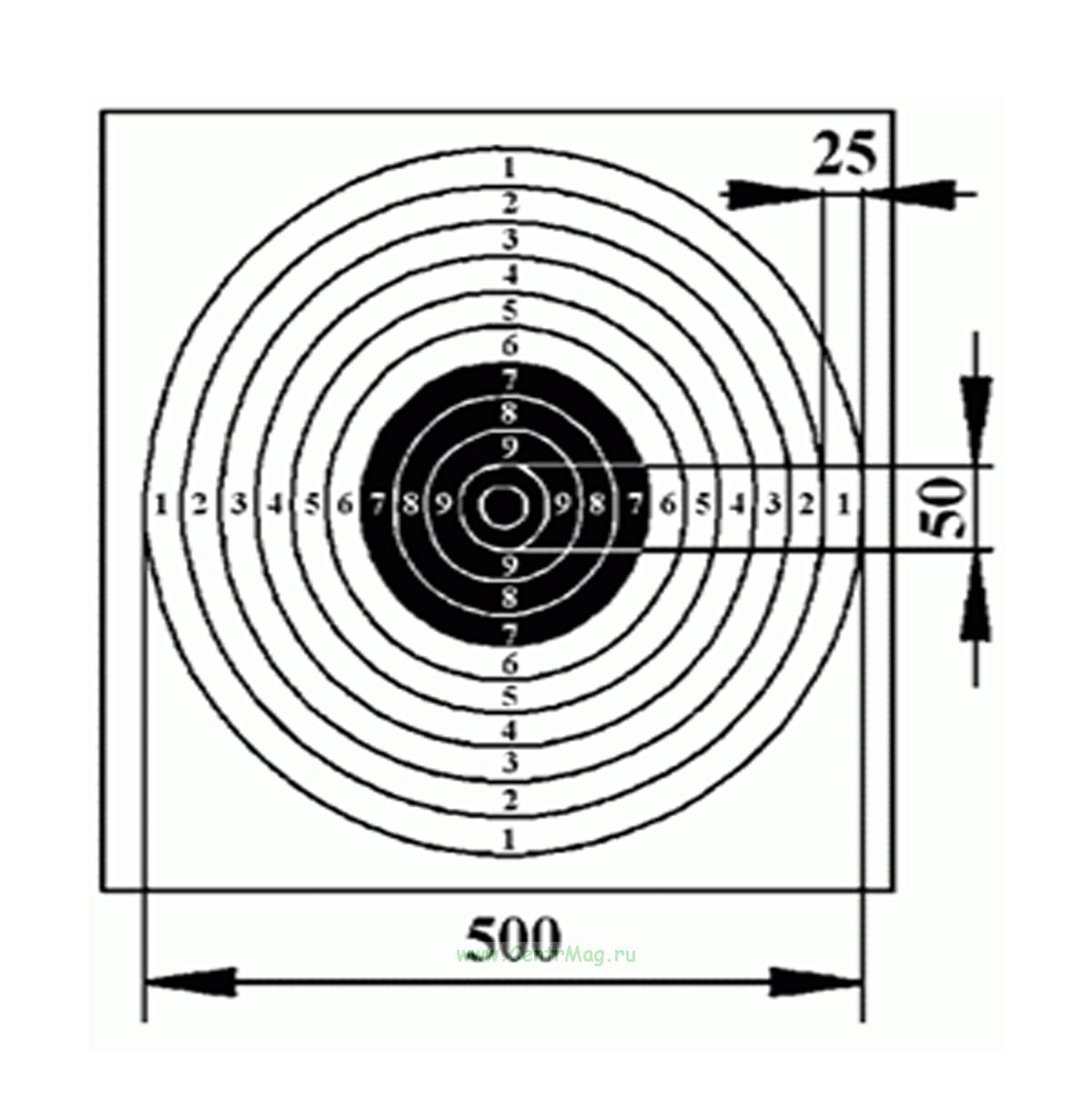 Тип мишени в зависимости от вида оружия – Для стрельбы из пистолета на 25 м и 50 м