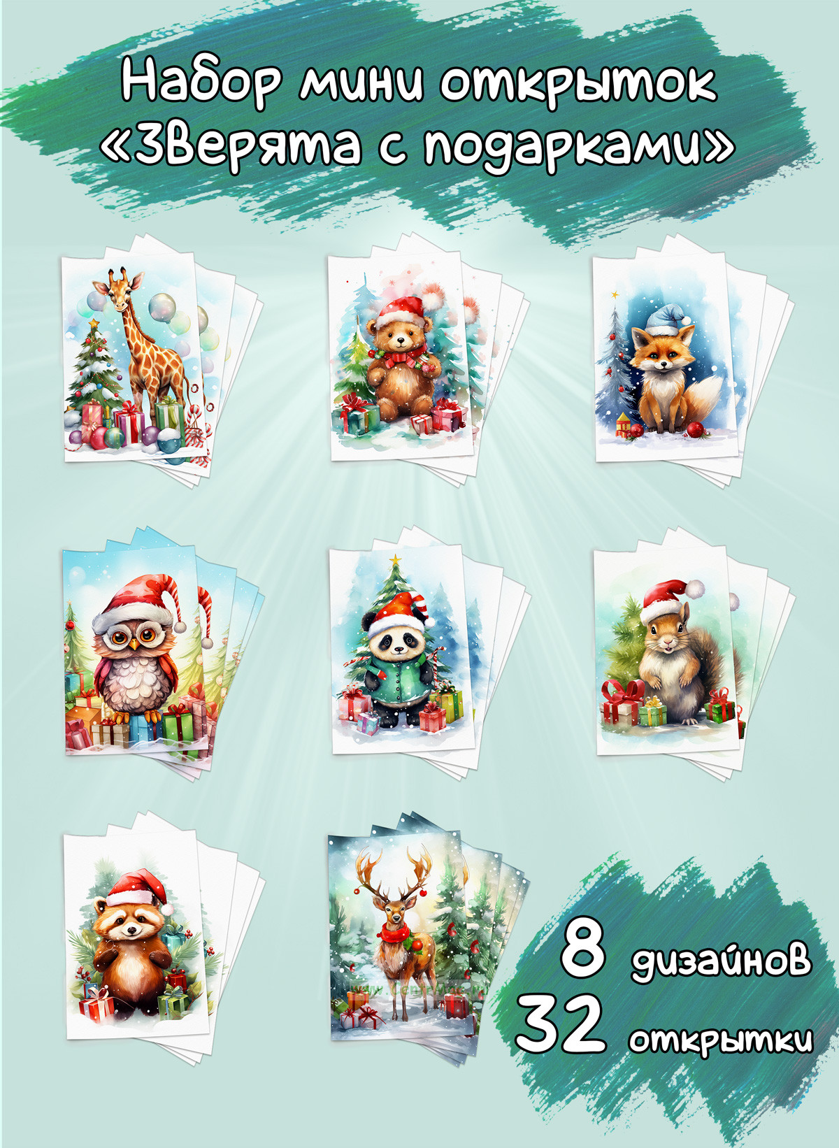 Набор мини открыток "Новогодние зверята" (220 руб.)