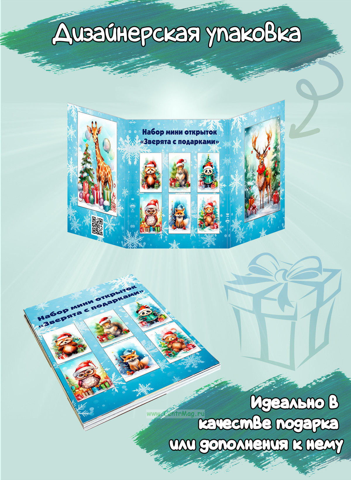 См. также Набор открыток "Зверята с подарками" большего размера.