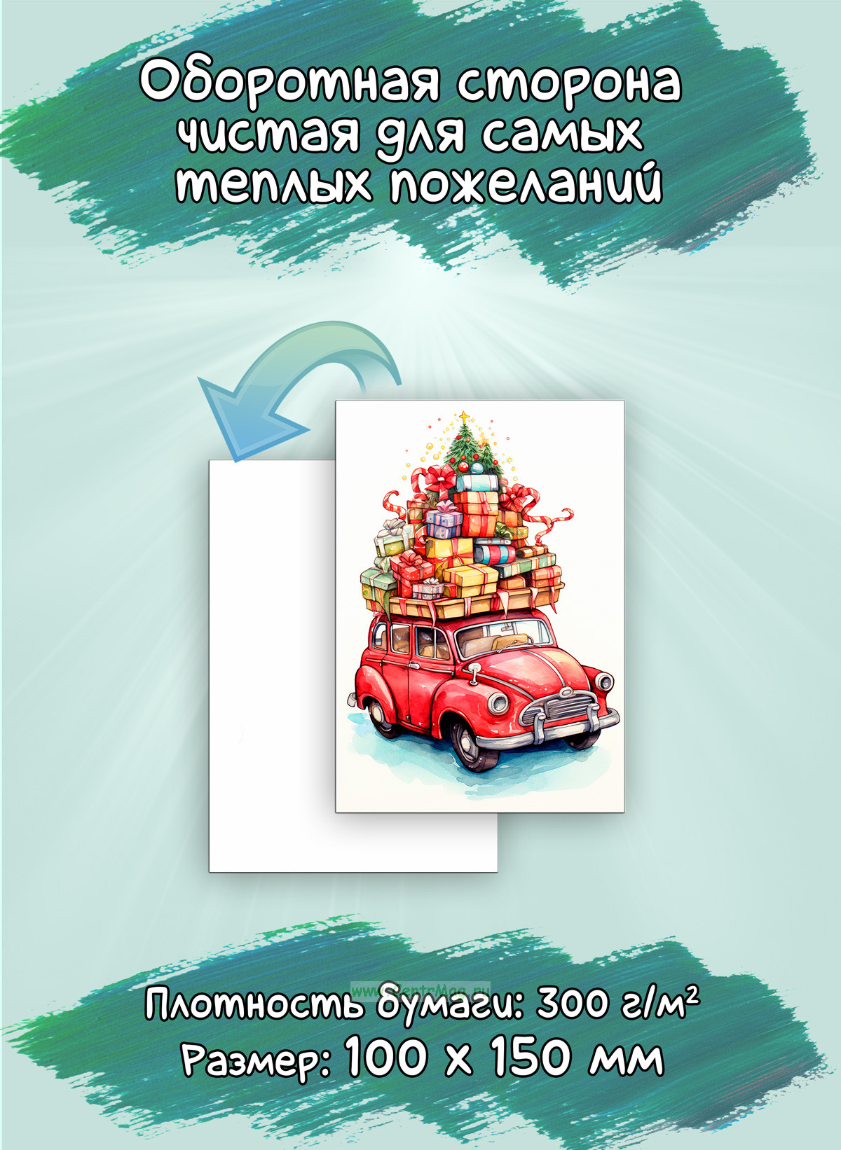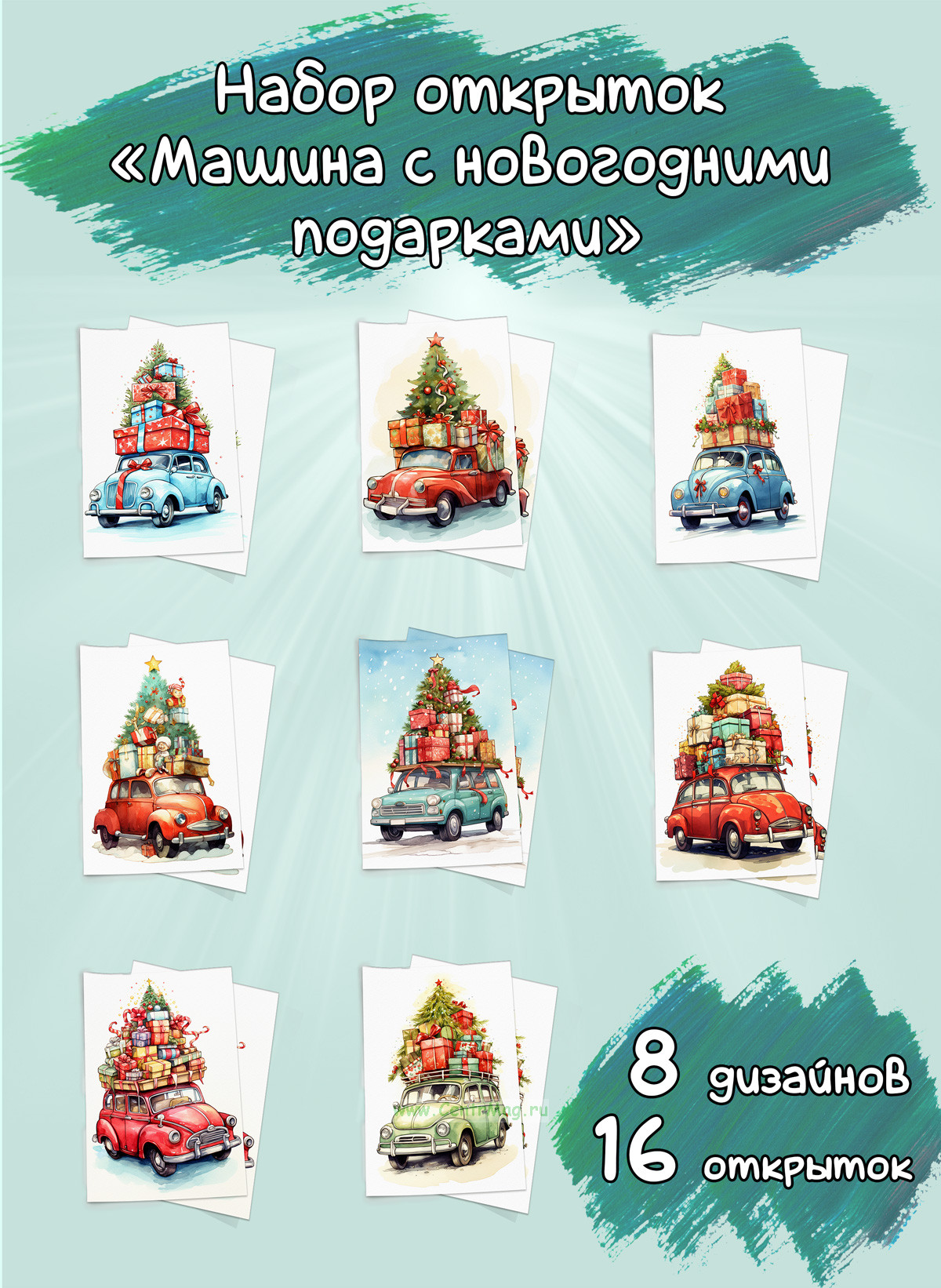 См. также Набор мини открыток "Машина с новогодними подарками" меньшего размера.