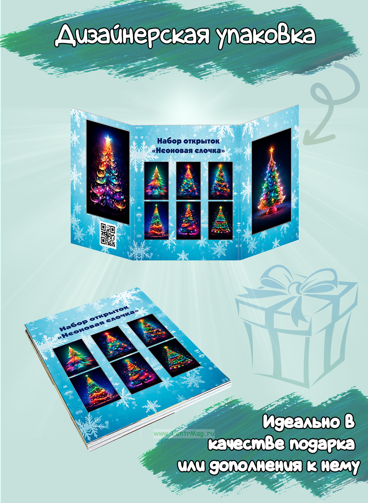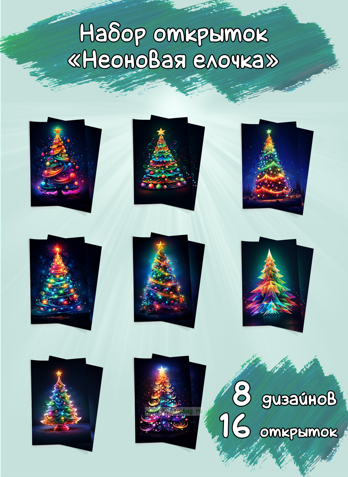 См. также Набор мини открыток "Неоновая елочка" меньшего размера.