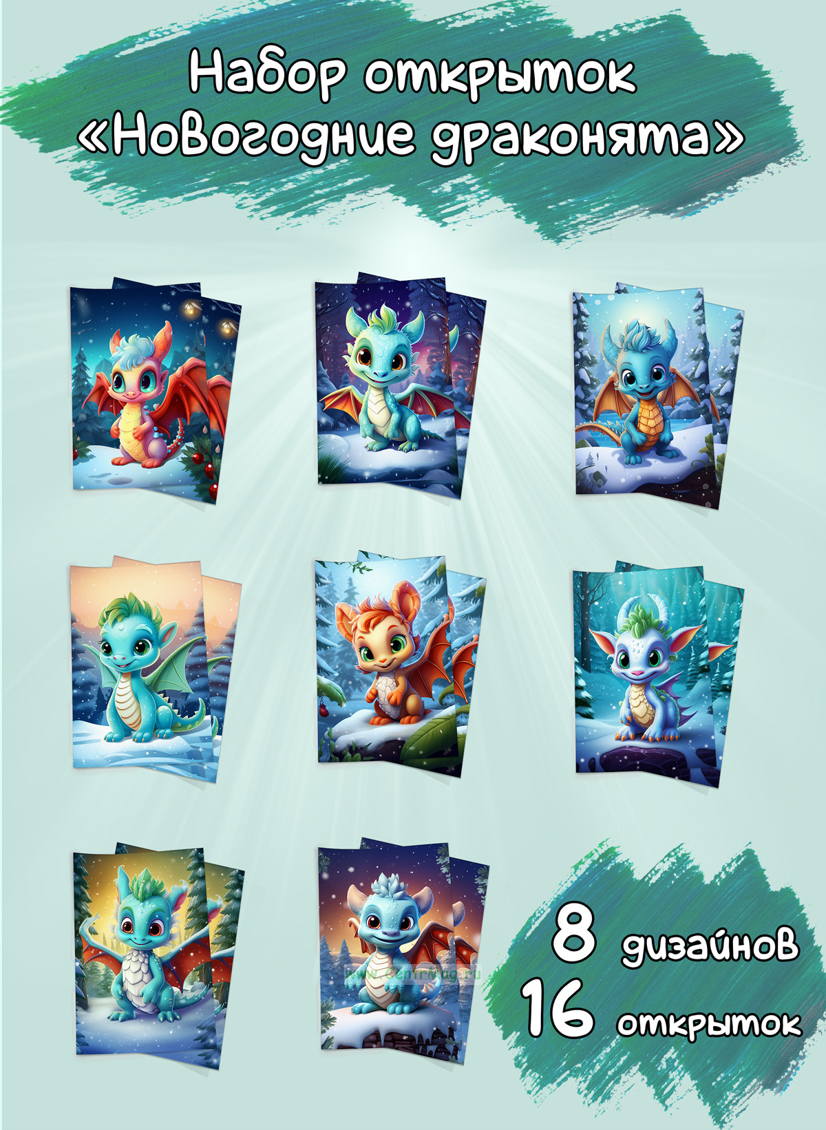 См. также Набор мини открыток "Новогодние драконята" меньшего размера.