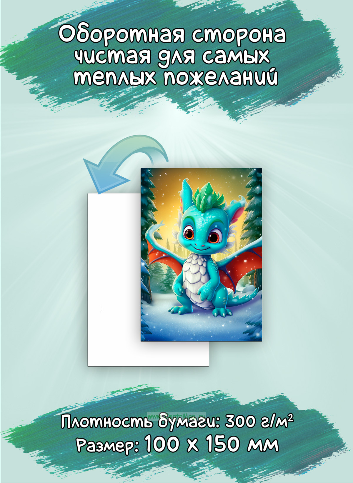 Оборотная сторона чистая, что позволит добавить самое теплое индивидуальное пожелание для ваших близких.