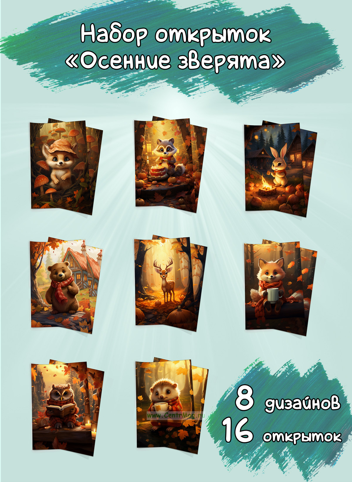 См. также Набор мини открыток "Осенние зверята" меньшего размера.