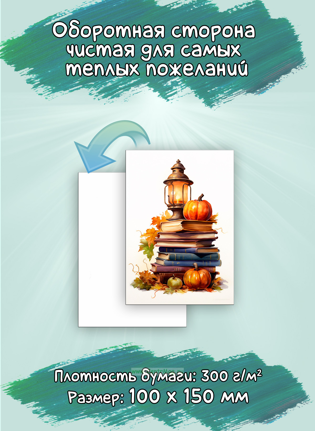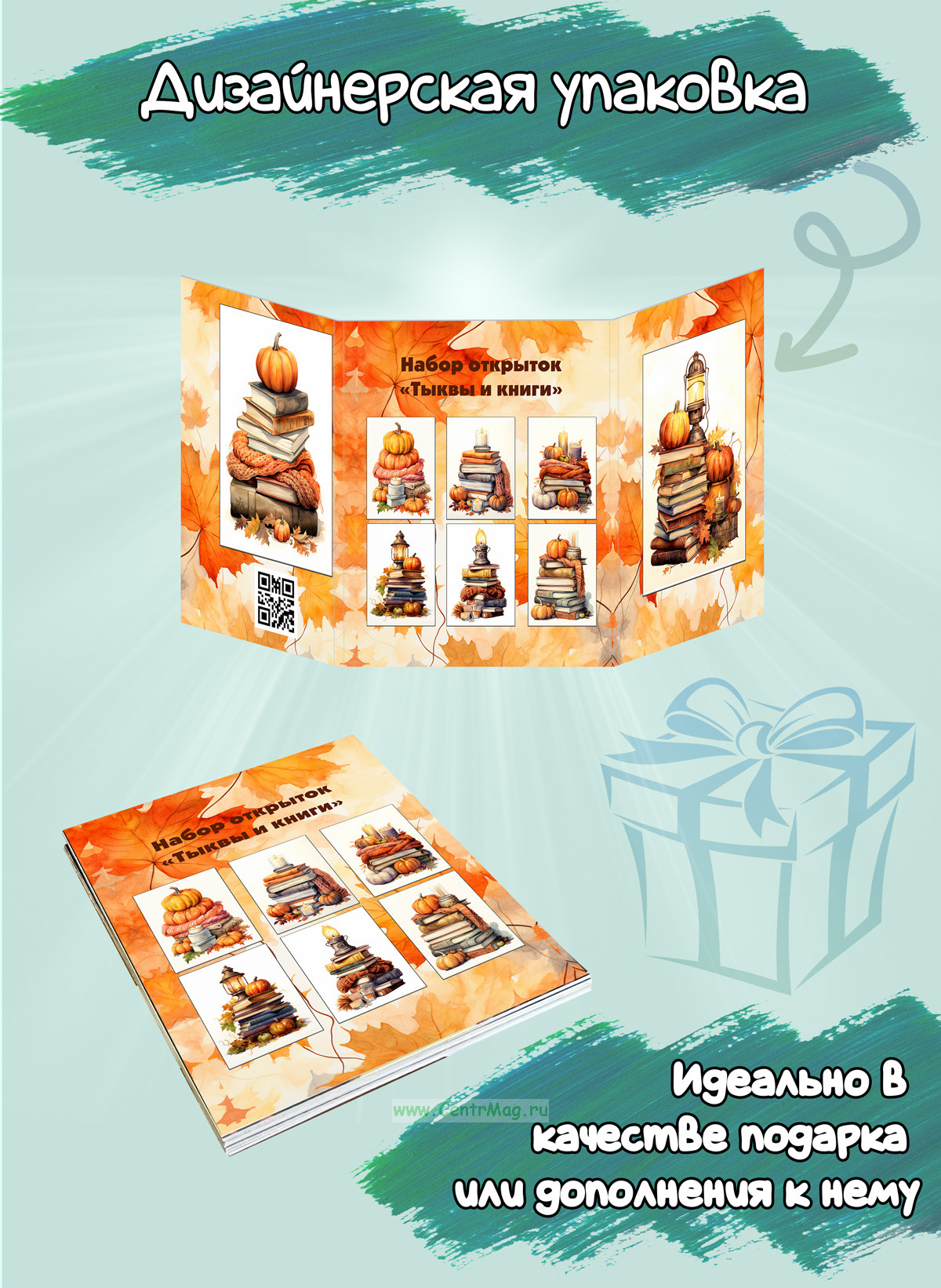 См. также Набор мини открыток "Тыквы и книги" меньшего размера.