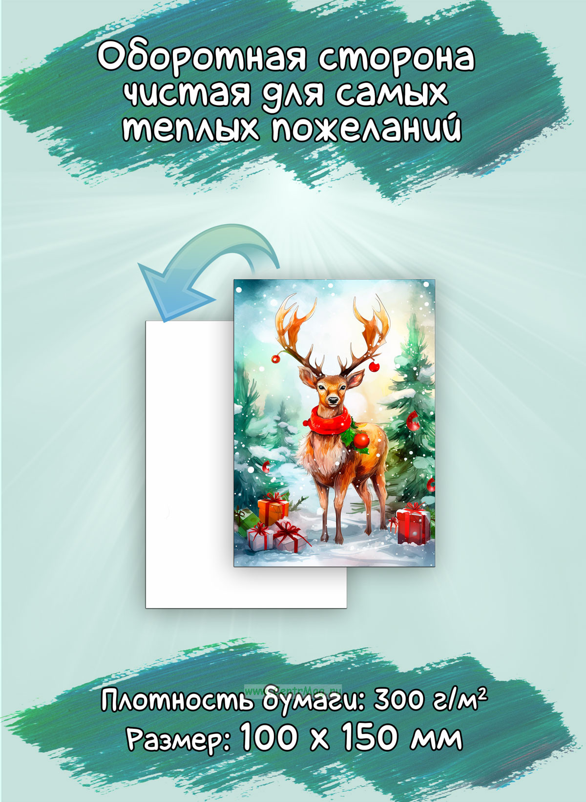 Оборотная сторона чистая, что позволит добавить самое теплое индивидуальное пожелание для ваших близких.