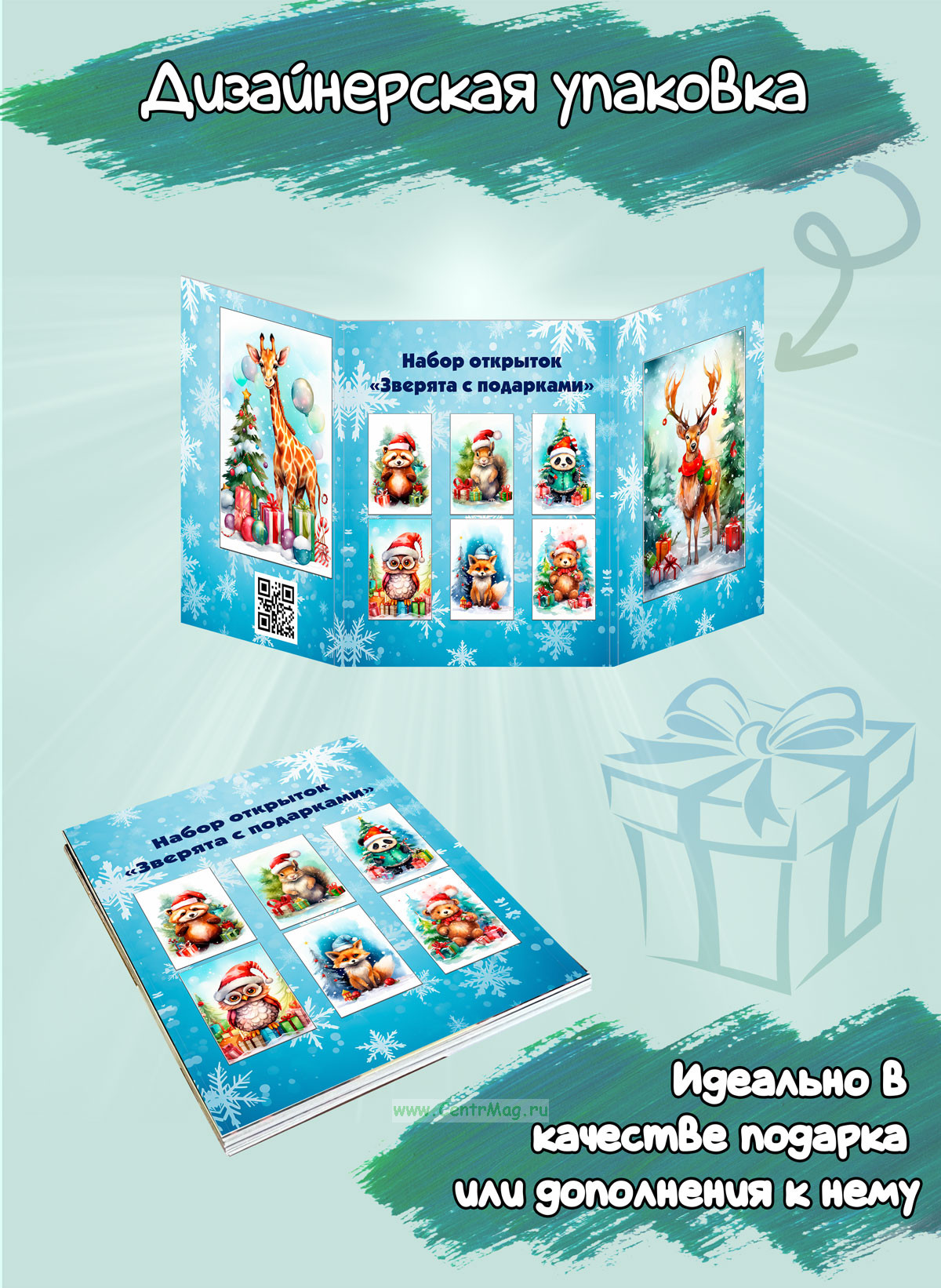 См. также Набор мини открыток "Зверята с подарками" меньшего размера.