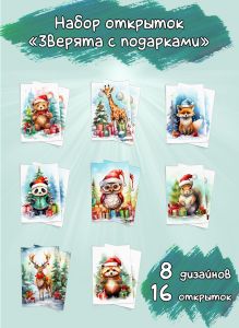 Набор открыток "Зверята с подарками"