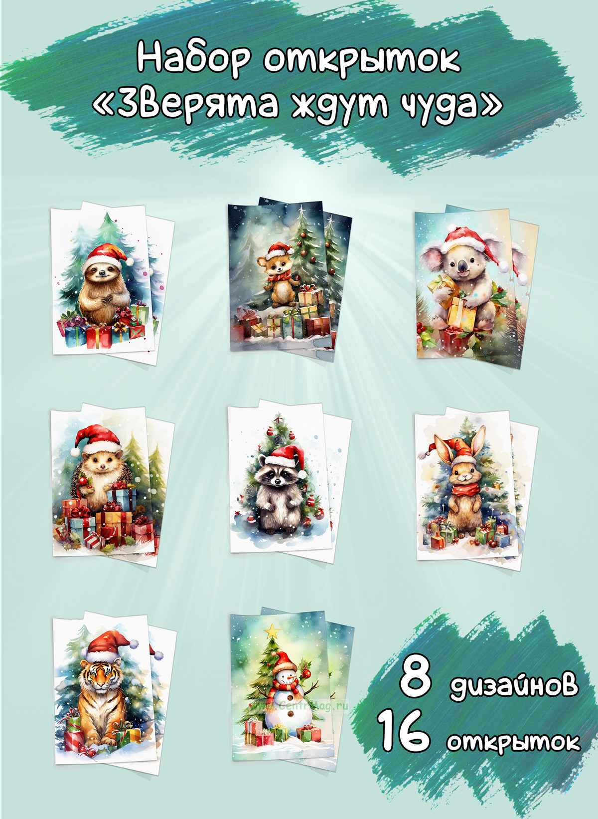 См. также Набор мини открыток "Зверята ждут чуда" меньшего размера.