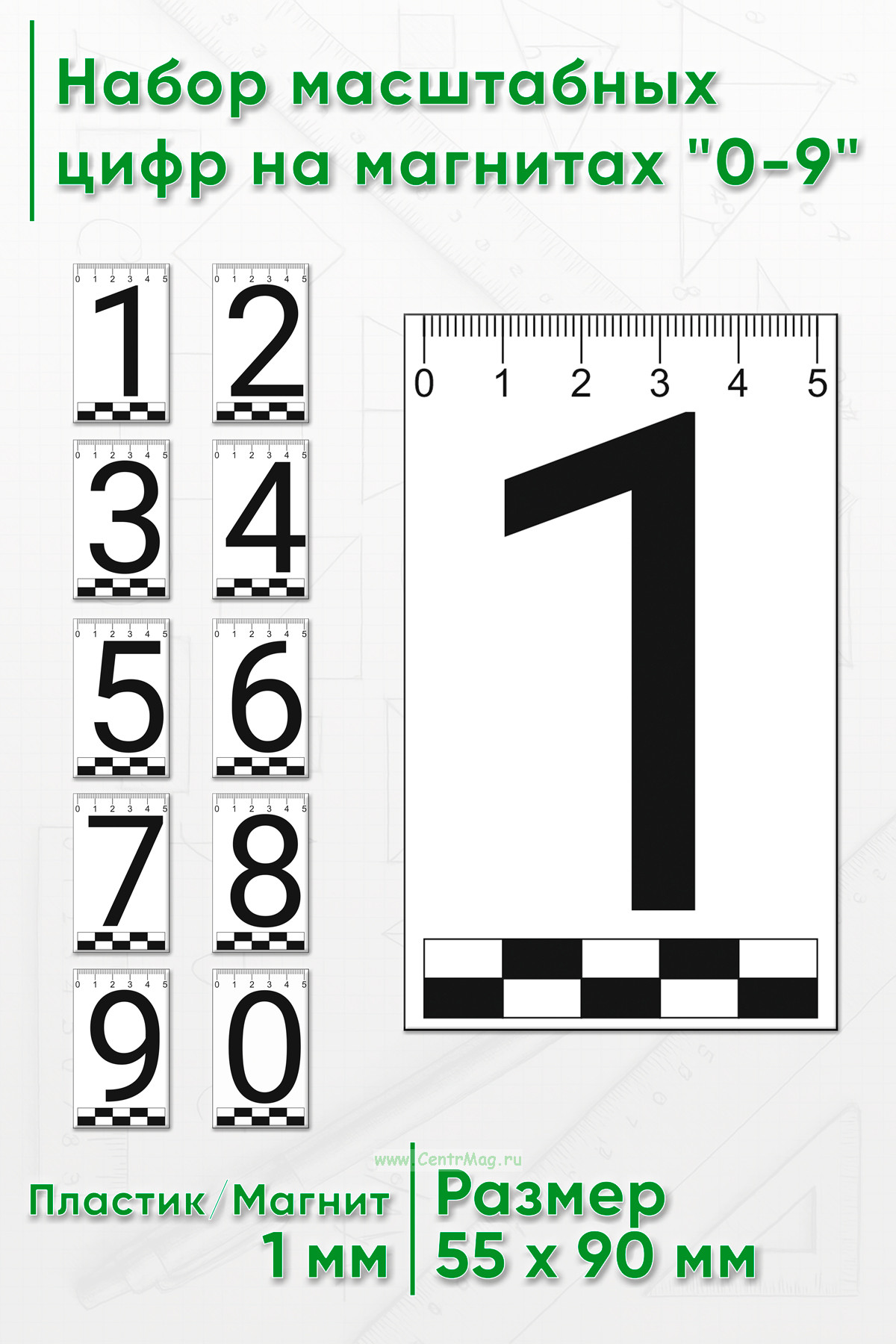 Набор пластиковых масштабных цифр на магнитах "0-9"