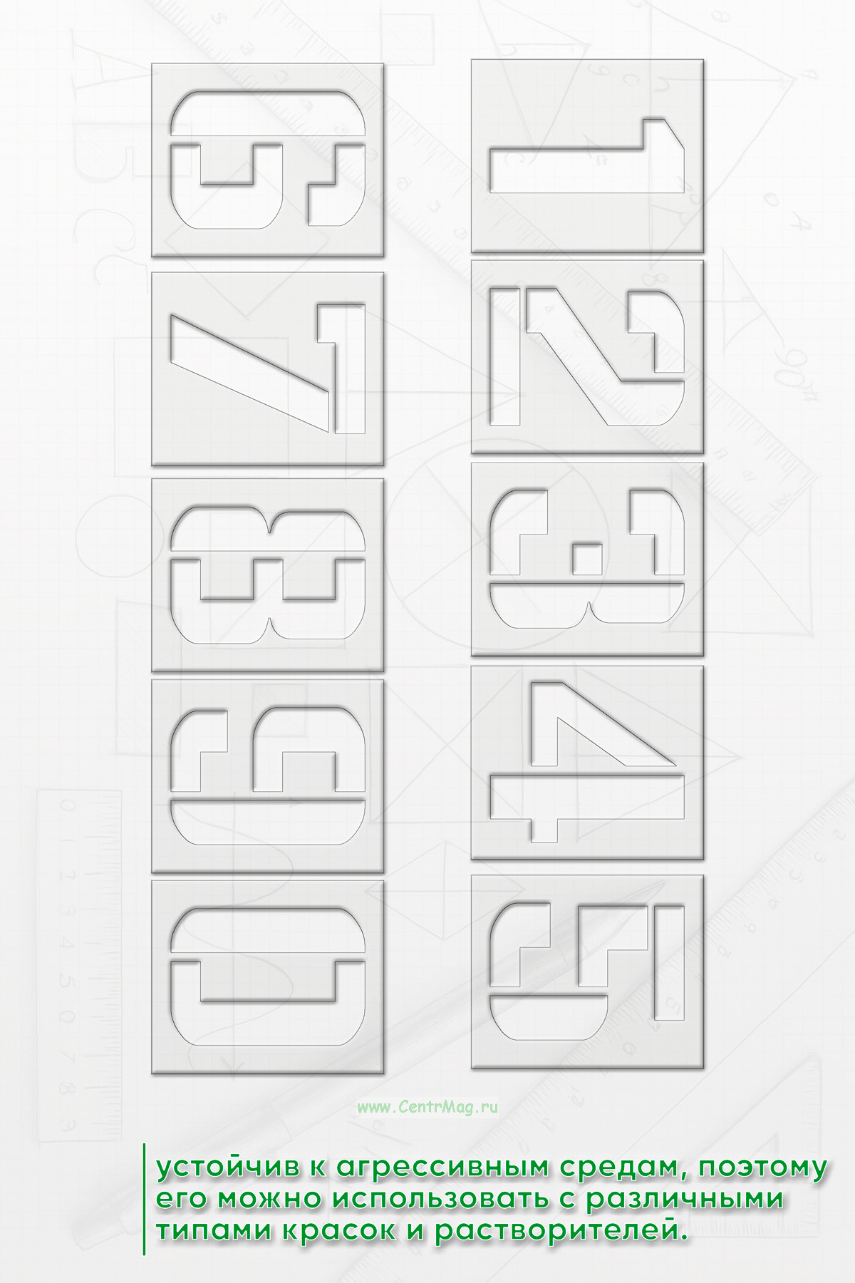 Набор состоит из 10 трафаретов – цифры от 0 до 9.