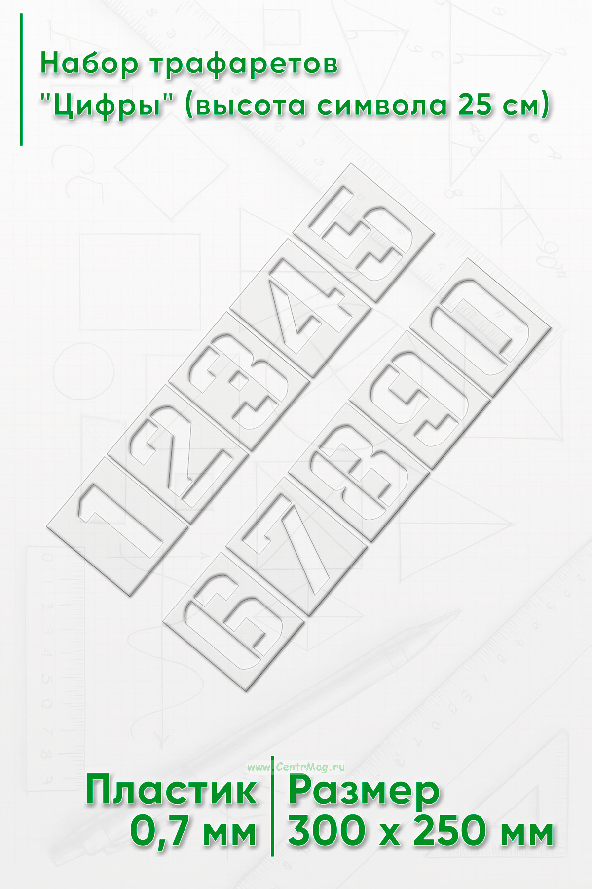 Набор состоит из 10 трафаретов – цифры от 0 до 9.