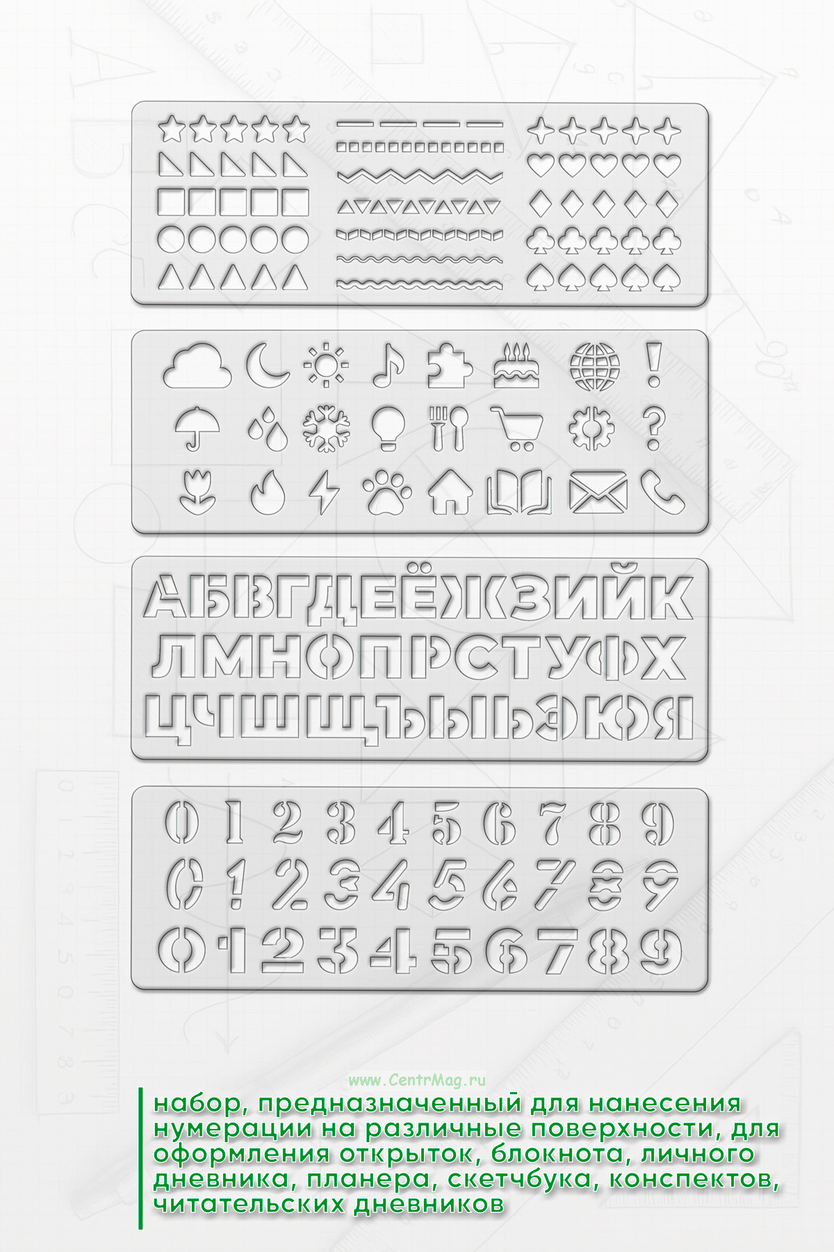 Набор трафаретов, предназначенный для нанесения нумерации на различные поверхности, для оформления открыток, блокнота, личного дневника, планера, скетчбука, конспектов, читательских дневников