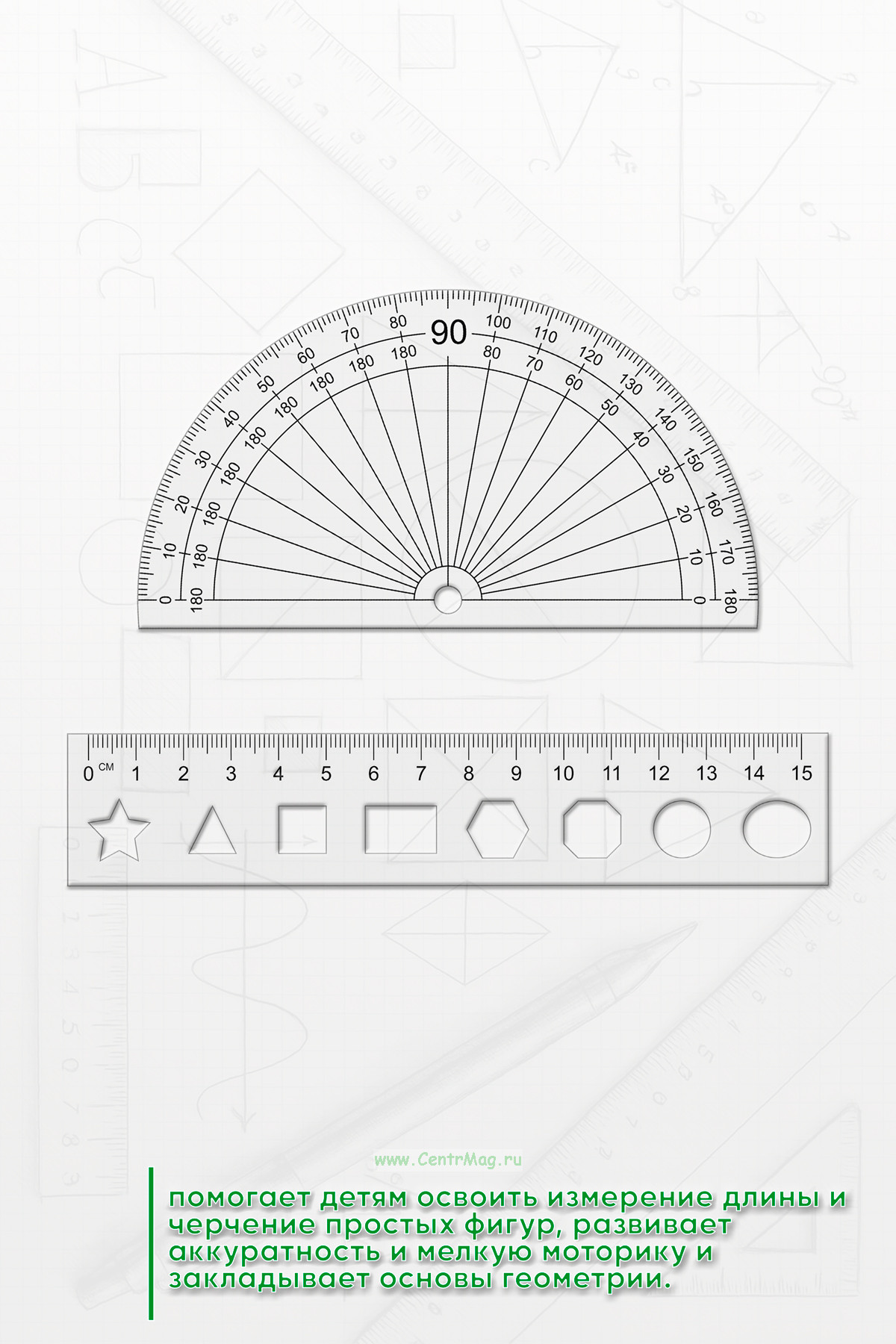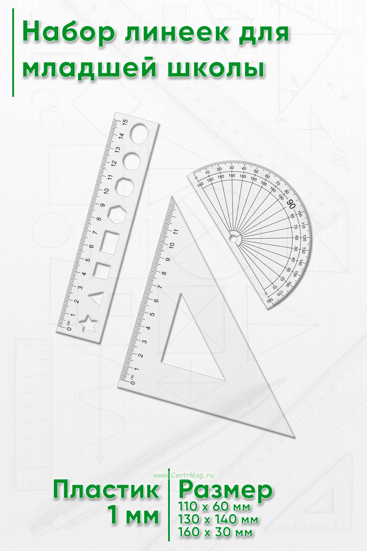 Набор линеек для младшей школы помогает детям освоить измерение длины и черчение простых фигур. Это развивает аккуратность и мелкую моторику и закладывает основы геометрии.