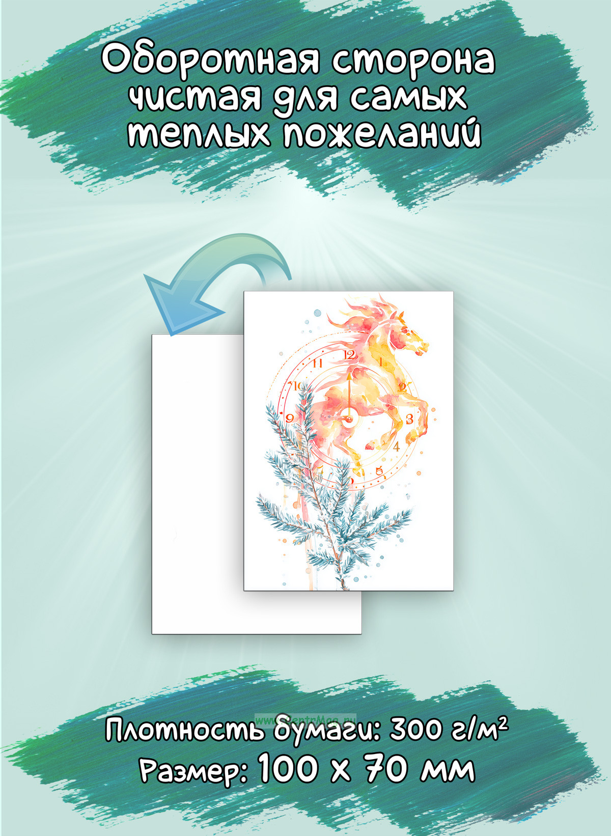 Оборотная сторона чистая, что позволит добавить самое теплое индивидуальное пожелание для ваших близких. Помимо этого, мини открытки можно использовать как бирку для подарка, или в качестве вложения в заказ.