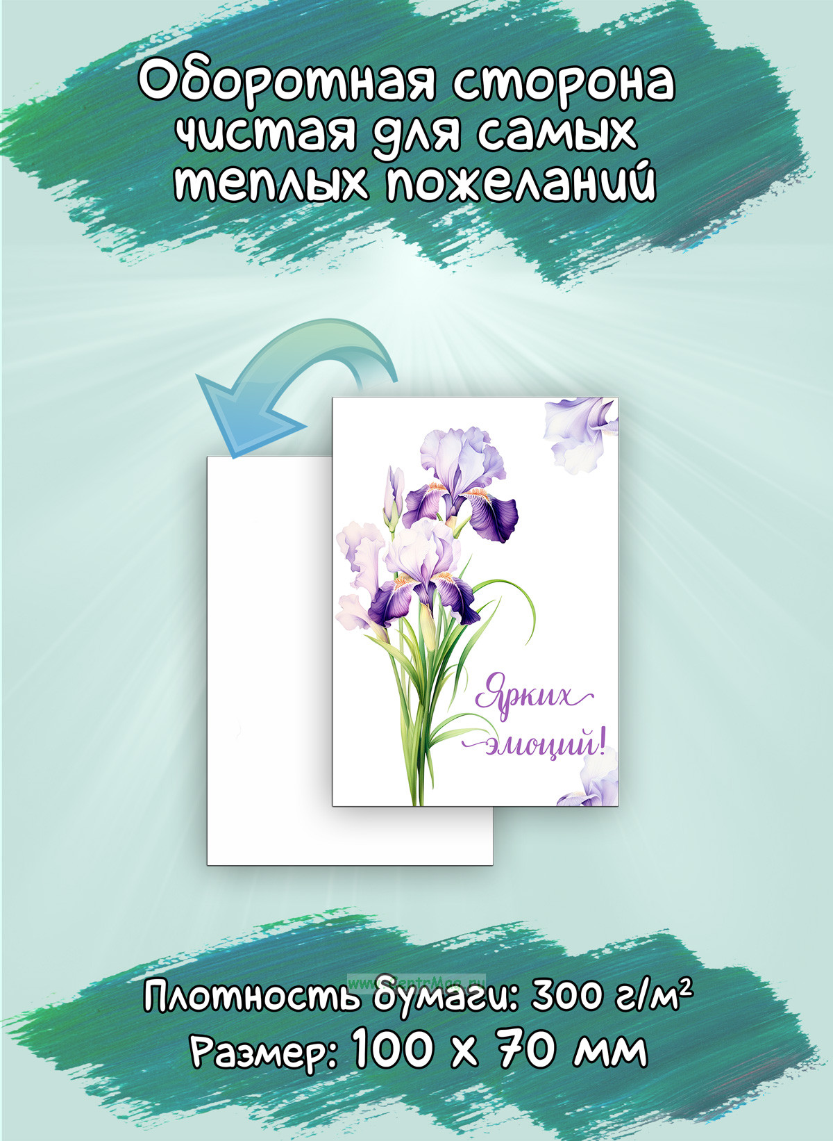 Оборотная сторона чистая, что позволит добавить самое теплое индивидуальное пожелание для ваших близких. Помимо этого, мини открытки можно использовать как бирку для подарка, или в качестве вложения в заказ.
