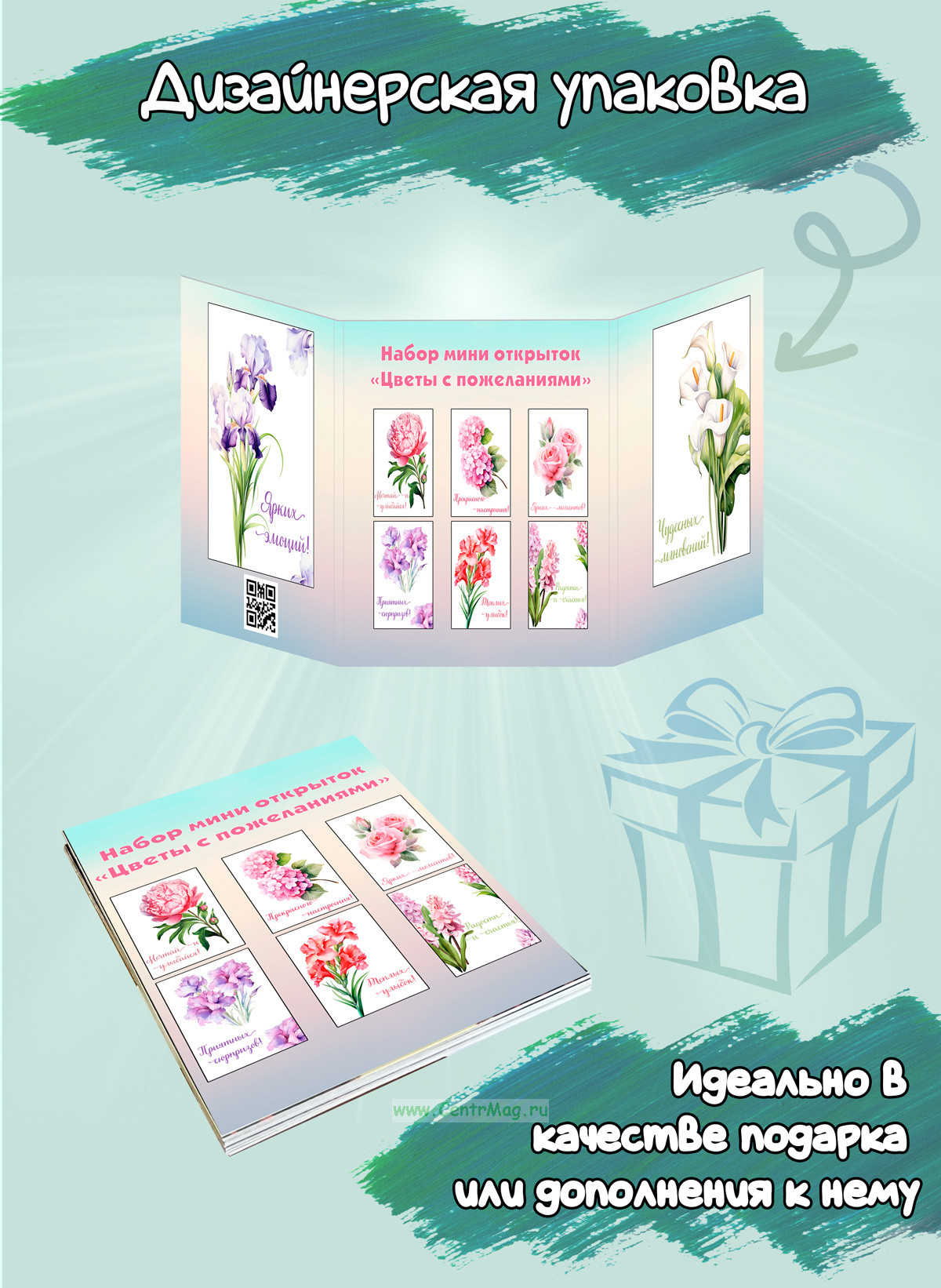 Открытки выполнены из плотного картона, яркая качественная печать.