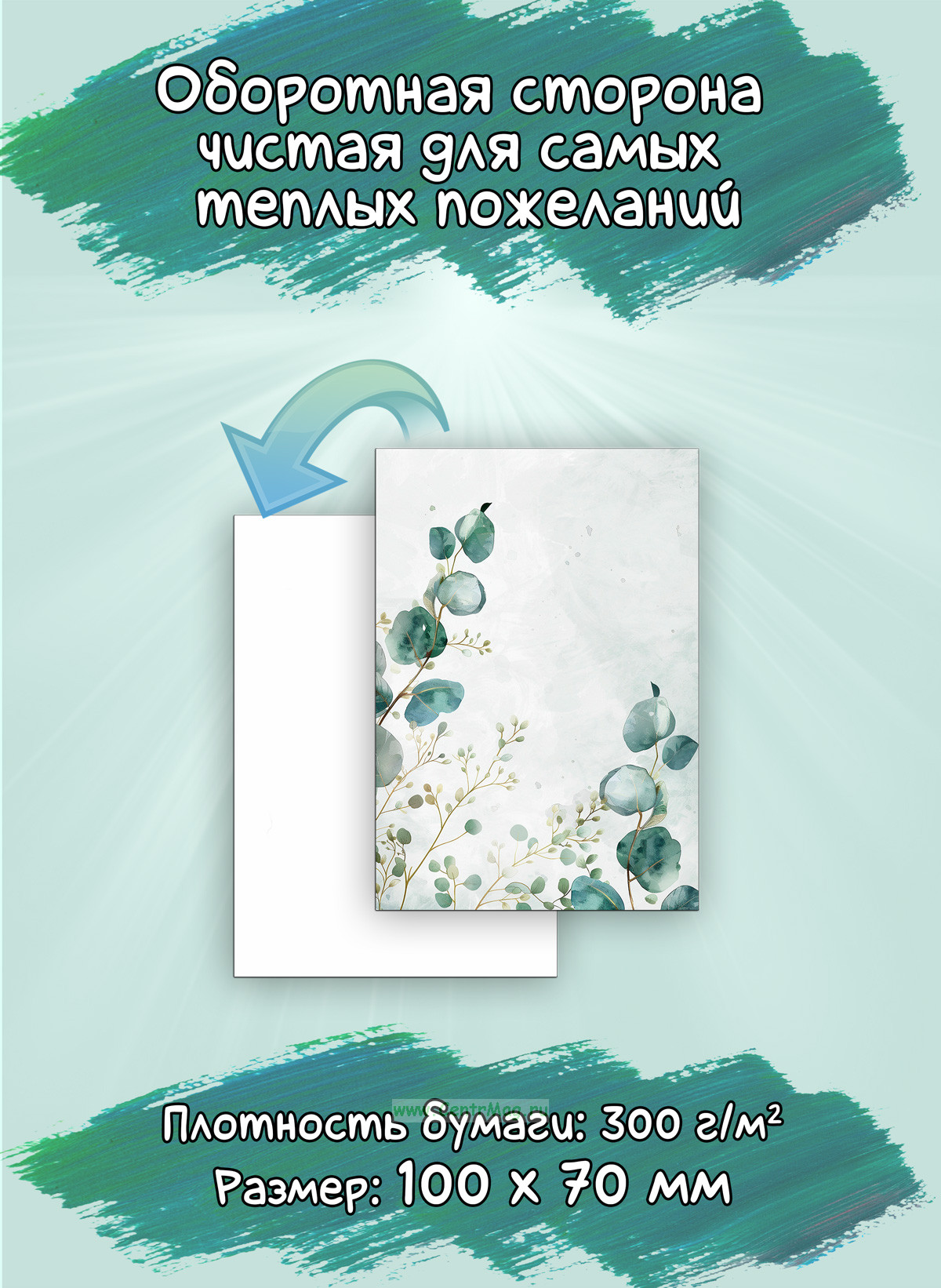 Оборотная сторона чистая, что позволит добавить самое теплое индивидуальное пожелание для ваших близких. Помимо этого, мини открытки можно использовать как бирку для подарка, или в качестве вложения в заказ.