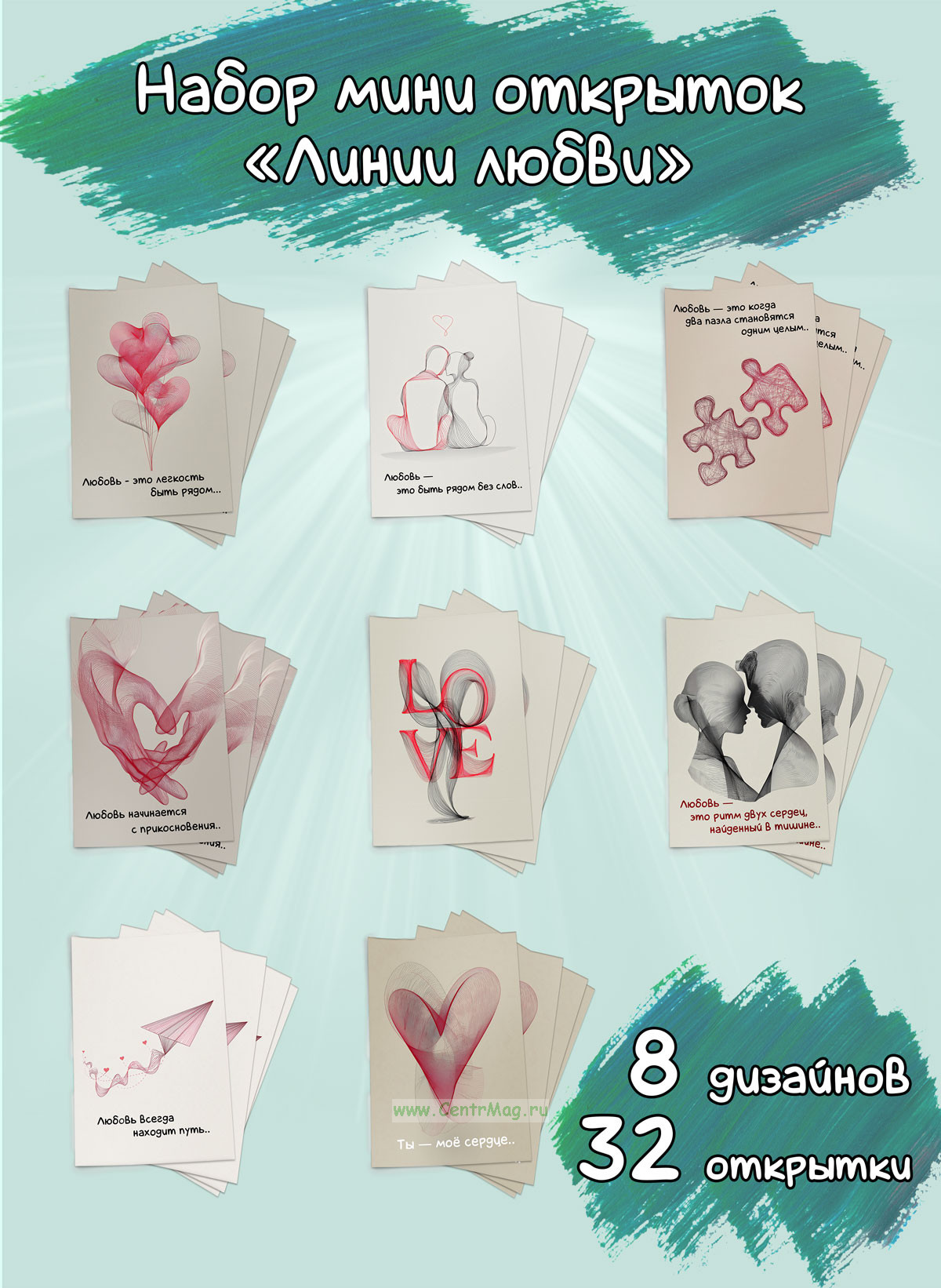 См. также Набор открыток "Линии любви" большего размера.