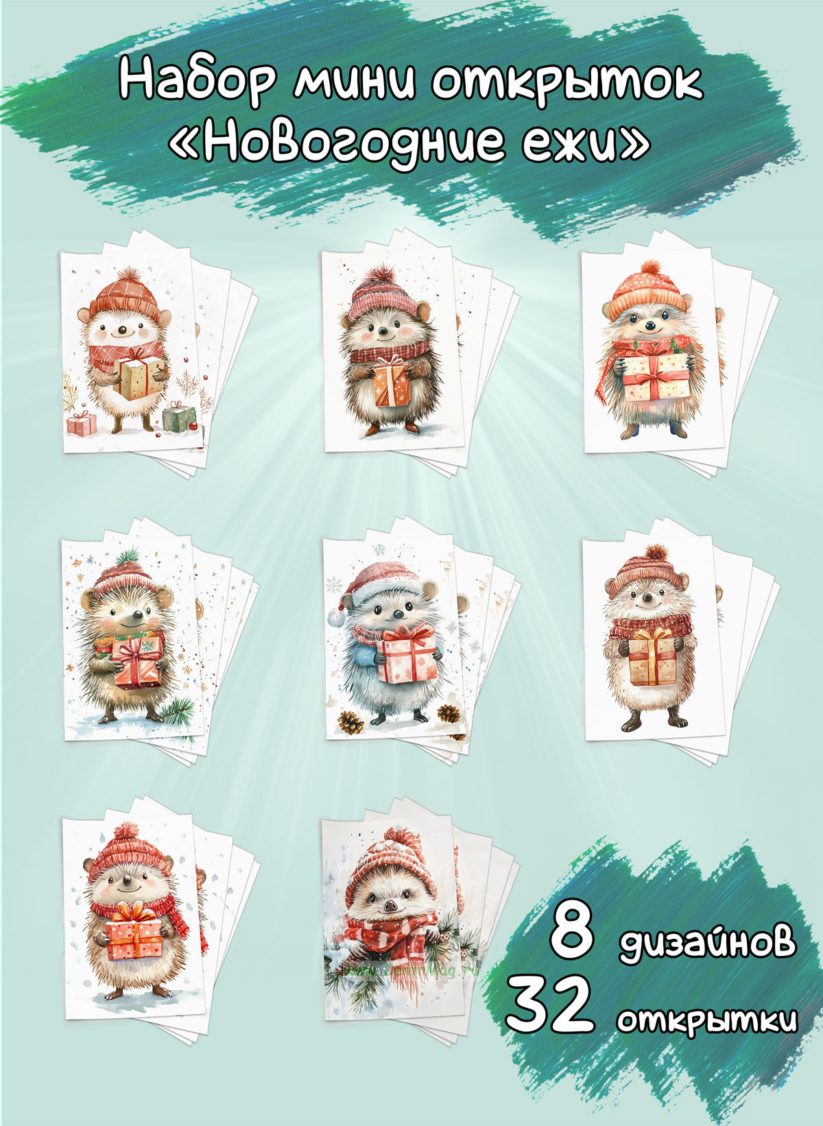 Набор мини открыток "Зимние ежи" (220 руб.)