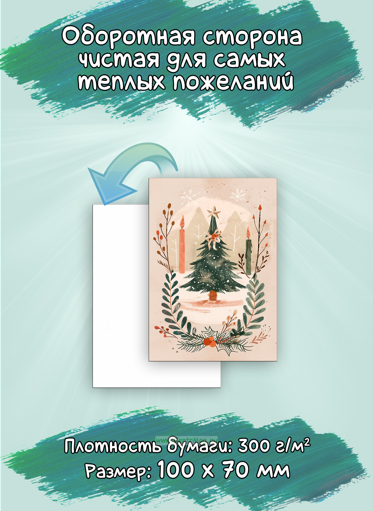 Оборотная сторона чистая, что позволит добавить самое теплое индивидуальное пожелание для ваших близких. Помимо этого, мини открытки можно использовать как бирку для подарка, или в качестве вложения в заказ.