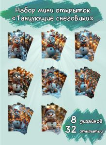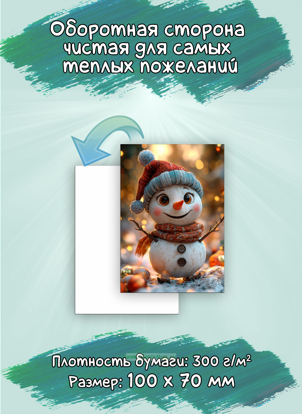 Поздравительные мини открытки можно использовать в качестве дополнения к основному подарку. Милые снеговики, сгенерированные ИИ, подарят дополнительное настроение и порадуют не только малышей, но и взрослых.