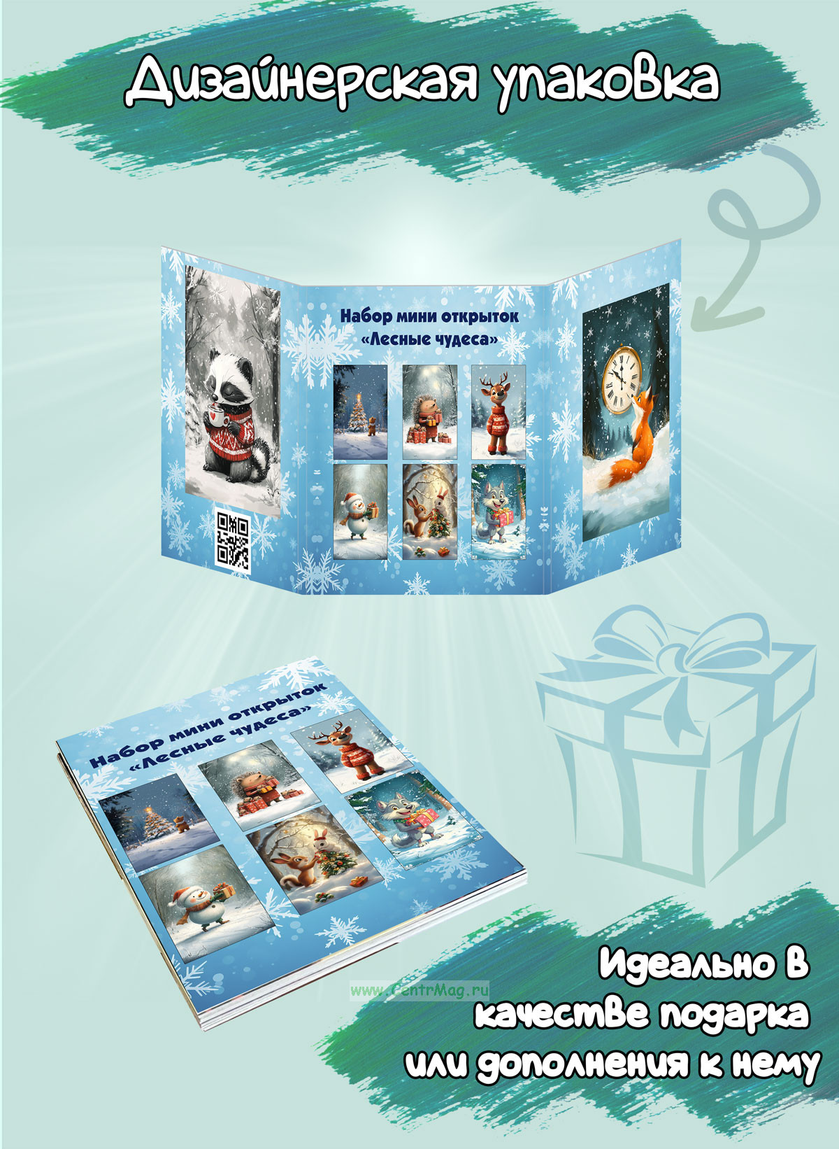 Набор мини открыток "Зверята с подарками" (220 руб.)