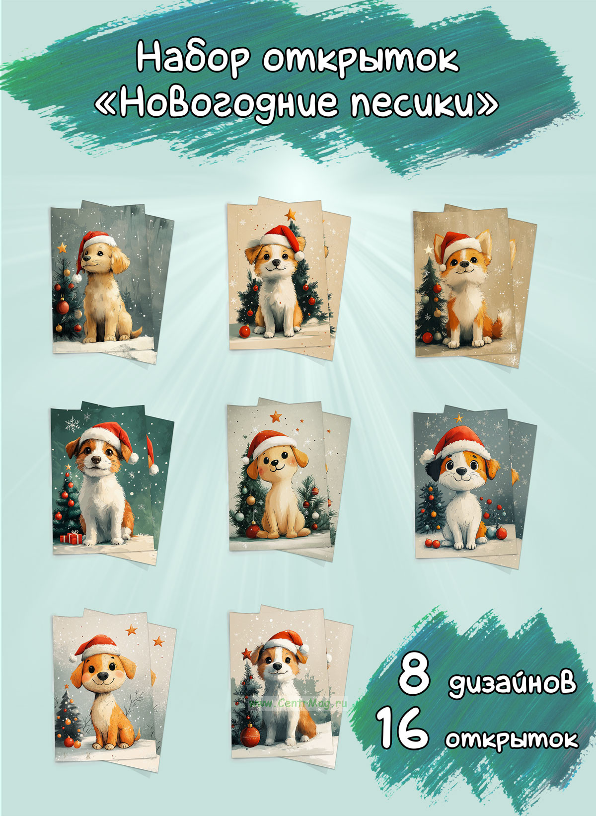 См. также Набор мини открыток "Новогодние песики" меньшего размера.