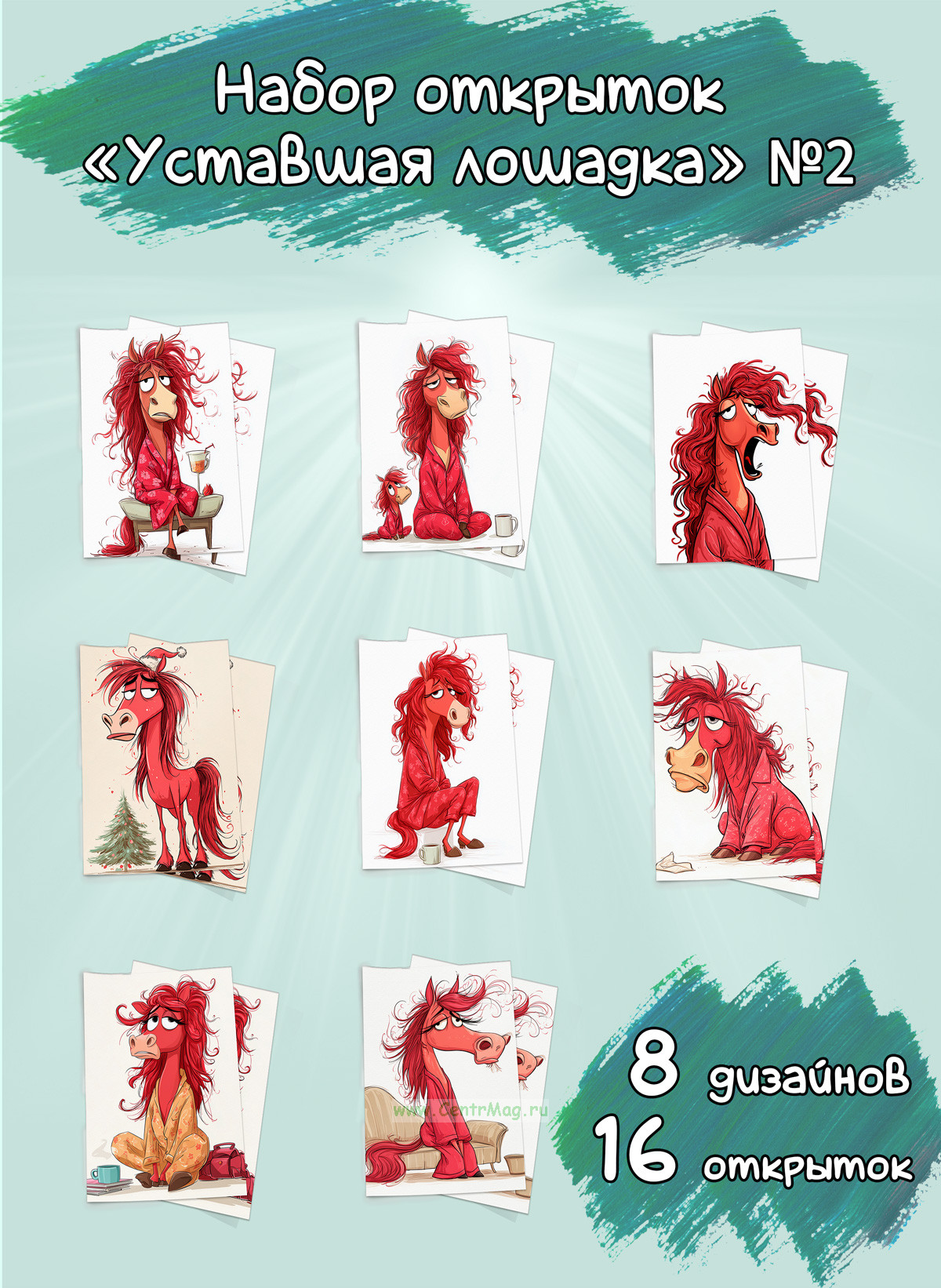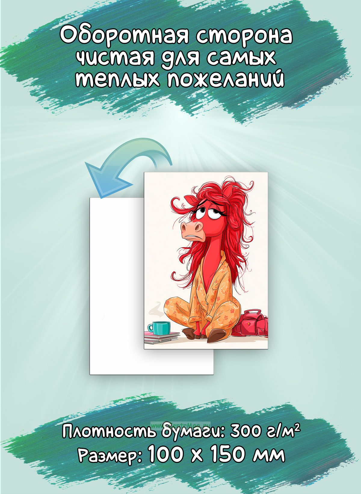 См. также Набор мини открыток "Уставшая лошадка" №2, 10х7 см меньшего размера.