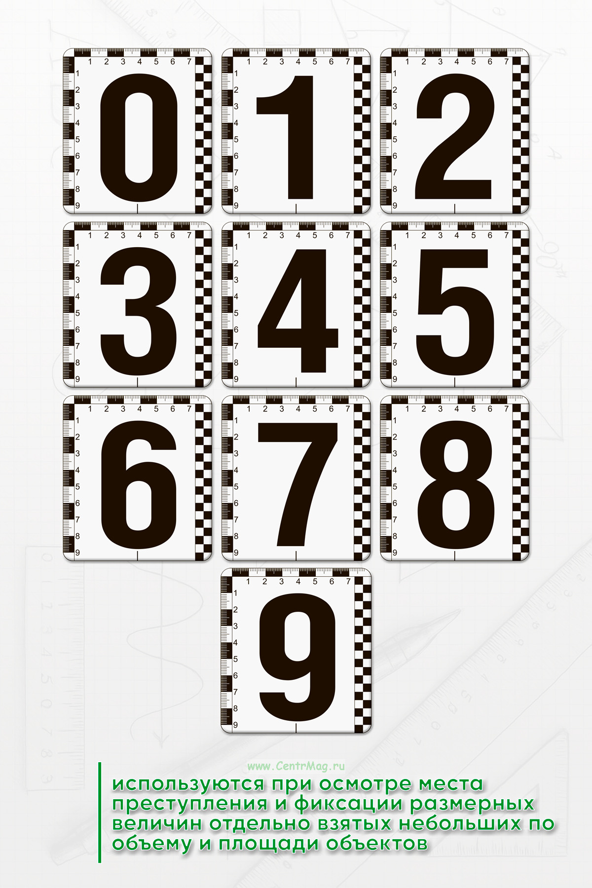 Набор используются при осмотре места преступления и фиксации размерных величин отдельно взятых небольших по объему и площади объектов